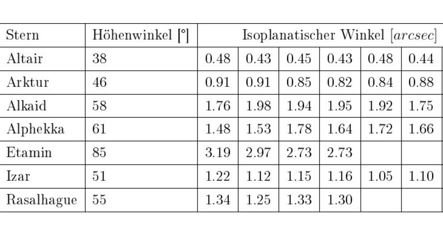Damit dies möglich ist, benötigt man genaue Informationen über die momentane Turbulenz der Atmosphäre. Ein wichtiges Mass dafür ist der isoplanatische Winkel.