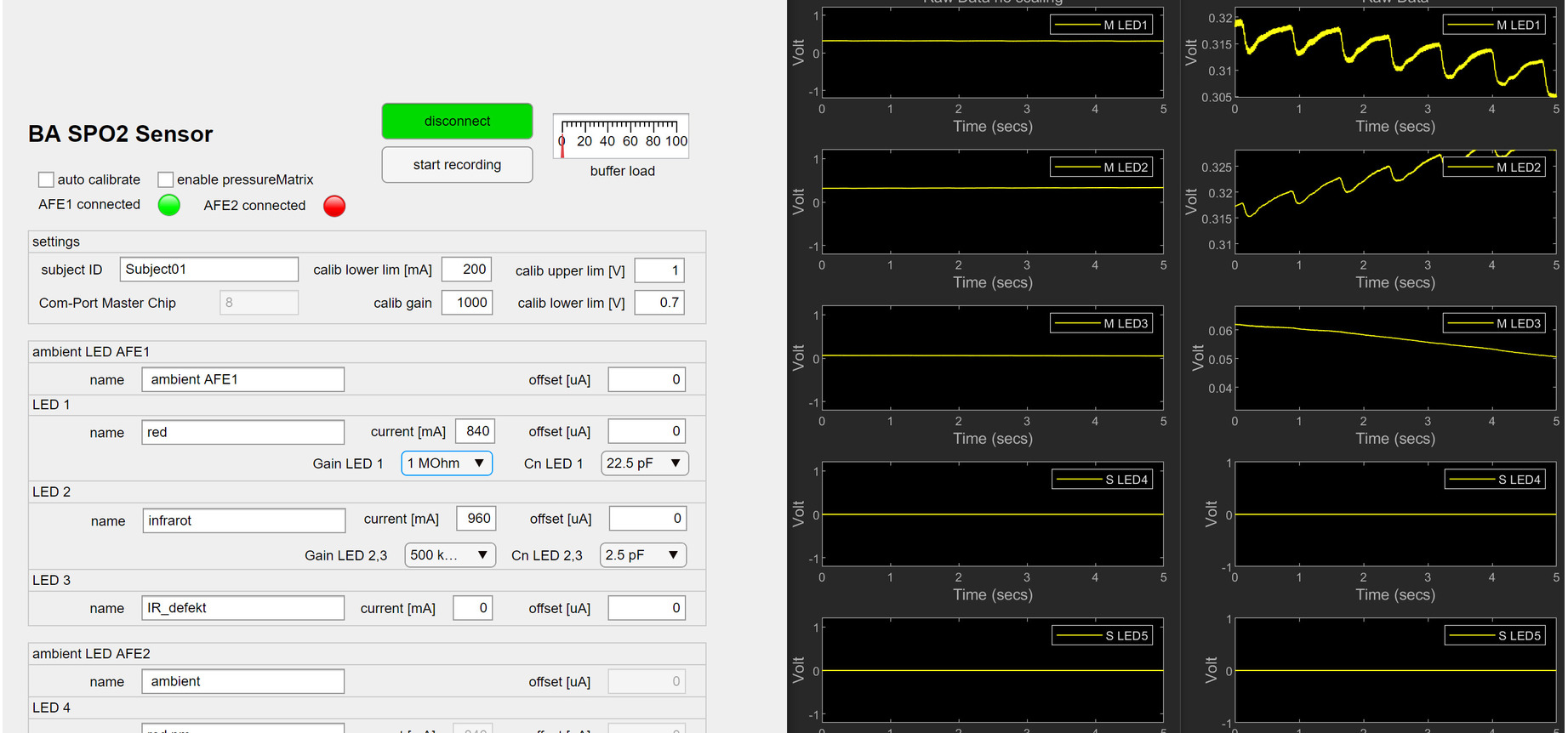 Ziel der Arbeit: SpO[sub]2[/sub] Sensoren werden in der Medizin verwendet, um in Echtzeit die Herzfrequenz und den Sauerstoffgehalt eines Patienten zu bestimmen. Ziel dieser Bachelorarbeit war es, ein solches Pulsoximeter zu realisieren, das in ein Textil (Mütze) integriert werden kann. Dazu wurde ein faseroptischer Messkopf und eine Ansteuer- und Auswerteelektronik entwickelt.