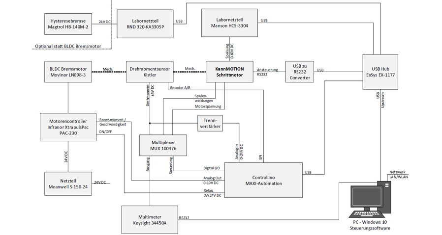 Vorgehen: In einem ersten Schritt galt es die Hardware und Software des bestehenden Prüfstands bezüglich der Funktionsweise und Ansteuerung aller Komponenten zu analysieren. Die weiteren Schritte der Umsetzung beinhalteten alle Aspekte der Softwareentwicklung.