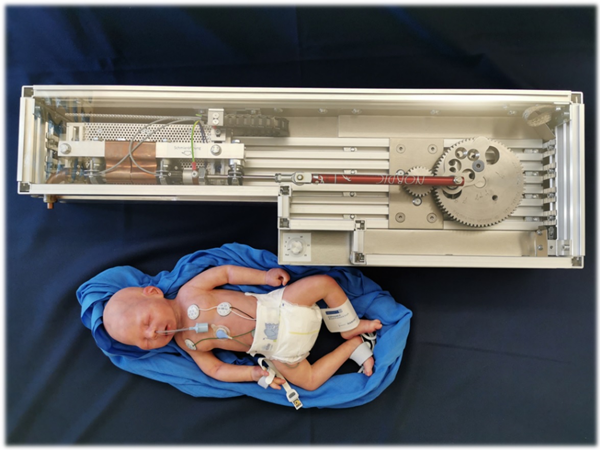 LuSi ist ein künstliches Baby für die Ausbildung von Klinikern (neosim AG). LuSi kann behandelt werden wie ein echtes krankes Frühgeborenes. In der vorliegenden Arbeit wurde ein «Kalibrator» gebaut, womit LuSi, aber auch andere Lungensimulatoren, exakt ausgemessen werden können und dann auch als Prüfgerät einsetzbar sind. Dazu gibt es spezielle gesetzlichen Anforderungen der EU (Messgeräterichtlinie 2014/32/EU), welche in diese Arbeit eingeflossen sind. Darauf basierend wurde der «Kalibrator» entworfen und aufgebaut. Dieses Gerät kann Volumen im Bereich von 1-40ml mit einer Frequenz von 0.44 Hz bis 27Hz auf einem externen Prüfling aufbringen. Die mechanische Auslenkung des Kalibrators wurden messtechnisch im akkreditieren Labor erfasst und die Gasbewegungen physikalisch/mathematische modelliert. Die mechanische Bewegung erzeugt Volumenverschiebungen mit einer Genauigkeit von +/-0.015ml. Es wurde gezeigt, dass Zustandsänderungen der bewegten Luftsäule systematische Fehler erzeugen, welche mathematisch kompensiert werden können. Nachdem die ganze Anlage mit einer unabhängigen Messung auf Plausibilität geprüft war, wurde sie am Beispiel von LuSi angewandt um deren Messgenauigkeit zu ermitteln.