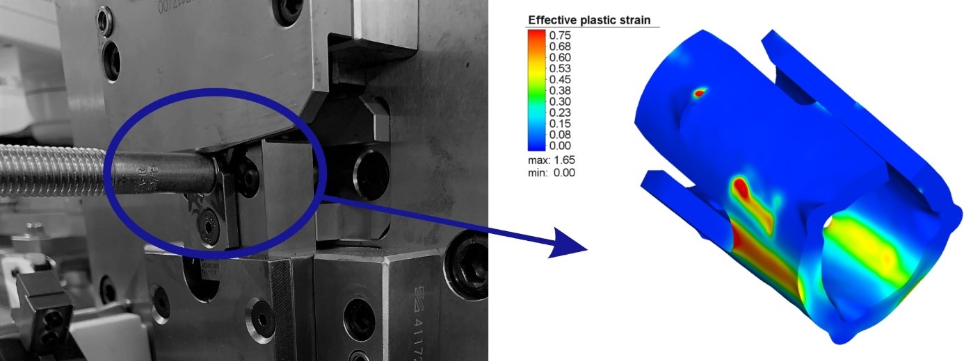 Bolzenanker werden in Milliarden Stückzahlen weltweit jährlich gefertigt. Die Qualitätsprüfung eines Bolzenankers geschieht mehrheitlich noch manuell durch eine Prüflehre. Ziel dieser Bachelorarbeit war die Entwicklung einer automatisierten Qualitätskontrolle zur Überwachung des maschinellen Umschliessungsprozess der vorgeformten Hülse um den Kopf des Bolzens. Das bestehende Qualitätskriterium wurde beibehalten, jedoch virtuell mittels Methoden des maschinellen Lernens realisiert. Anhand der zur Verfügung stehenden Maschinendaten wird eine sehr genaue Prädiktion über die Qualität des gefertigten Bolzens gemacht (F1 score ca. 95%). Mit Klassifikationsverfahren werden die möglichen Ergebnisse (zu klein, passend, zu gross) und mit Regressionsverfahren geometrische Grössen der umschlossenen Hülse geschätzt, um Trends in den Qualitätsmerkmalen frühzeitig zu erkennen. Die für die Learner relevanten Messgrössen wurden mittels einer Simulation des Umformprozesses identifiziert. Mittels eines mit DOE entwickelten Testplans wurden die für das Training der Learner notwendigen Daten erfasst. Als nächsten Schritt werden diese Prädiktoren unter Verwendung des Onnx-Standards als Echtzeit-Qualitätskontrolle direkt auf der Maschinensteuerung implementiert.