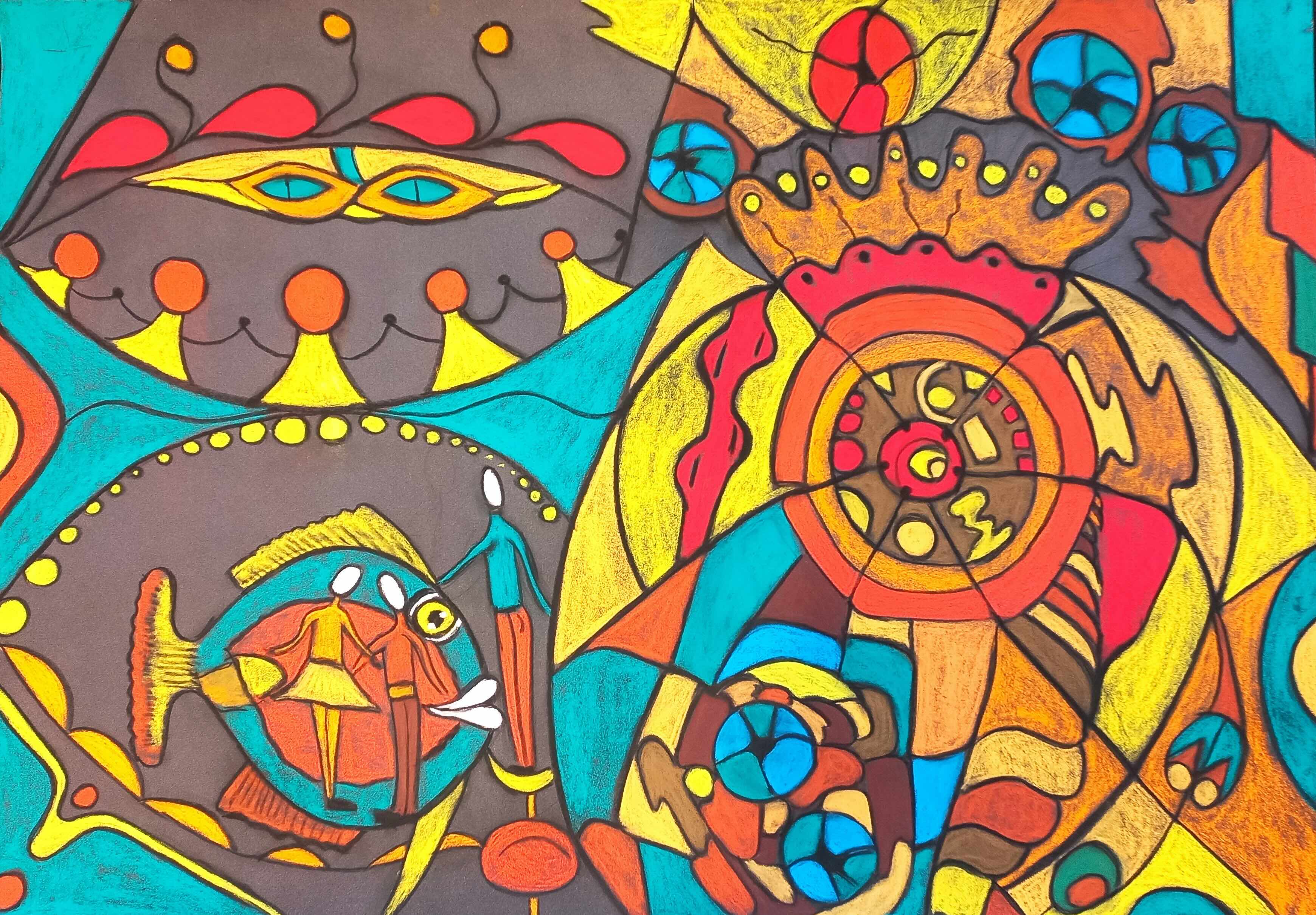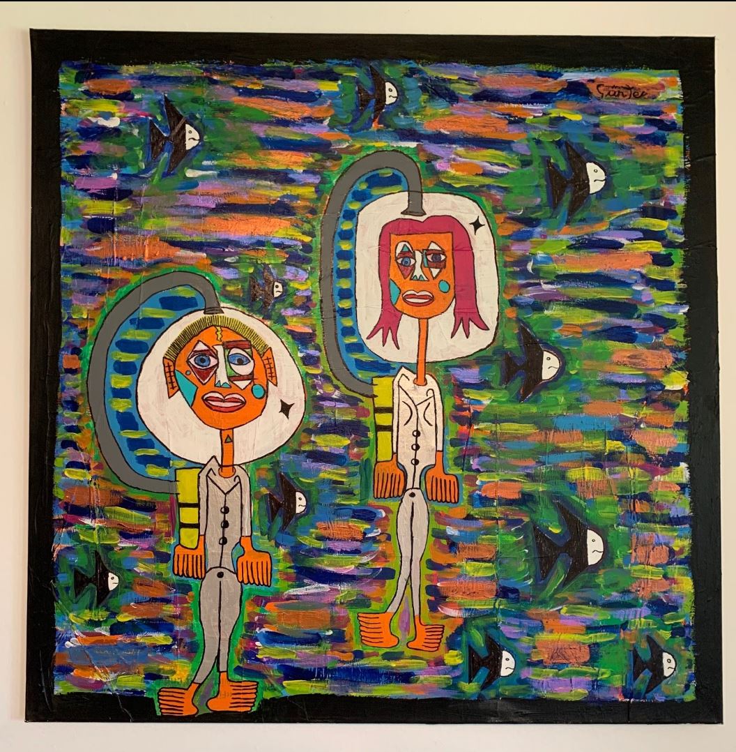 Fast ohne abzusetzen zeichnet Sandrine Mbala mit sicherem Strich Figuren. Mal sind es Menschen, mal sind es Monster. Ihr ganz persönlicher Blick auf die Welt zeigt uns, wie unterschiedlich sie gesehen werden kann.