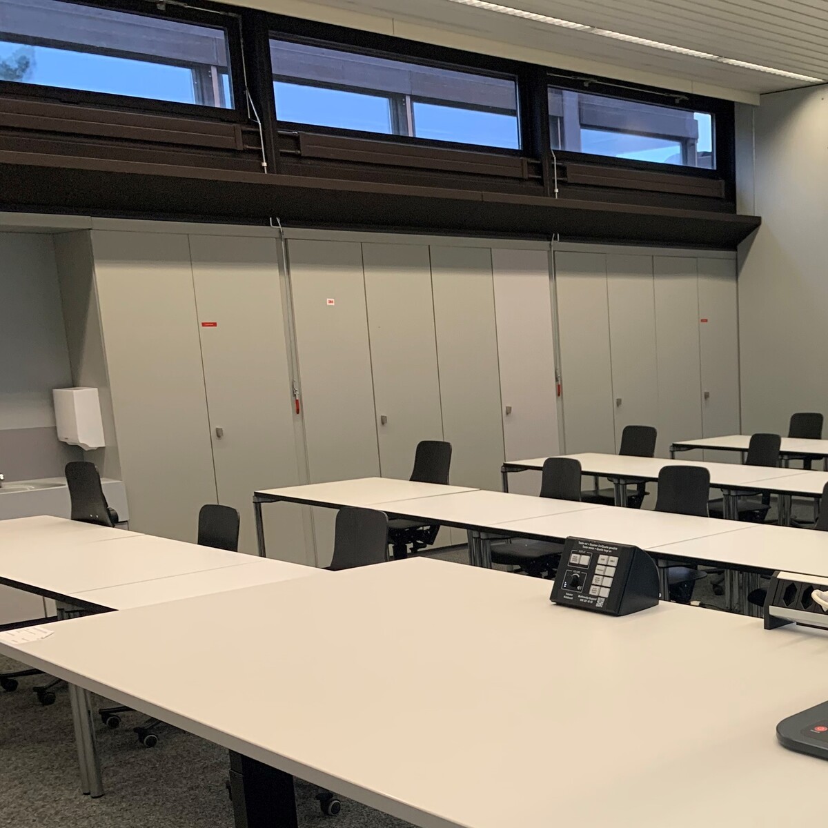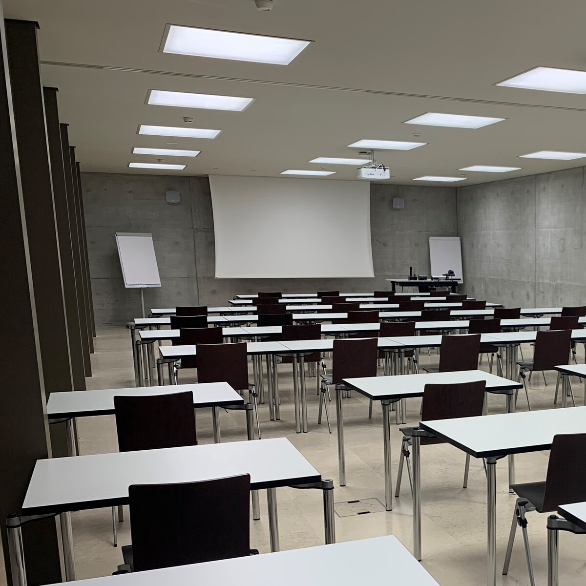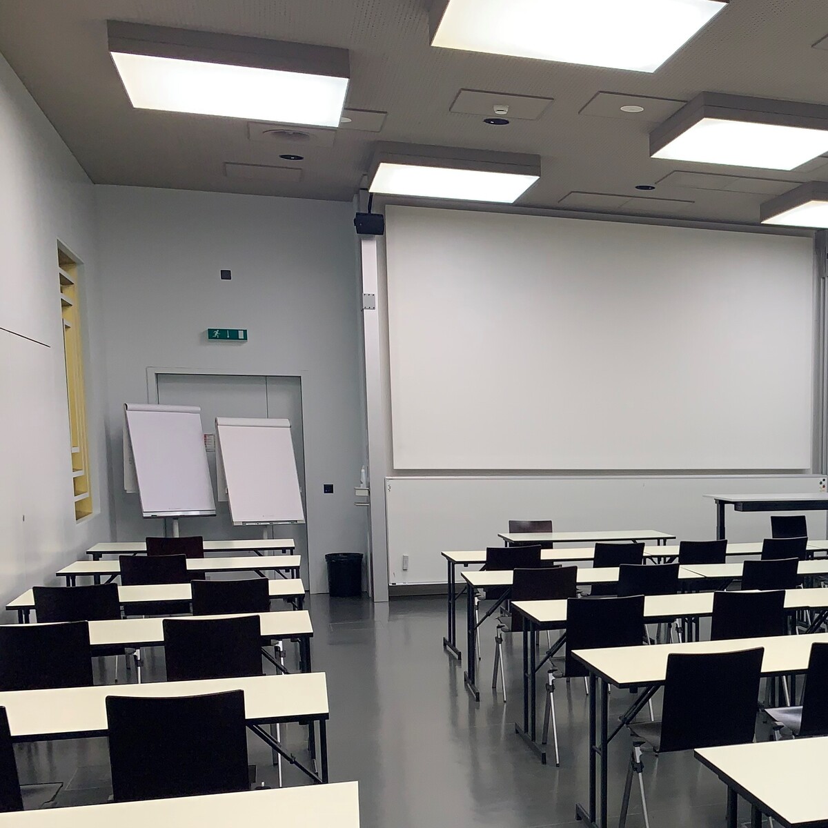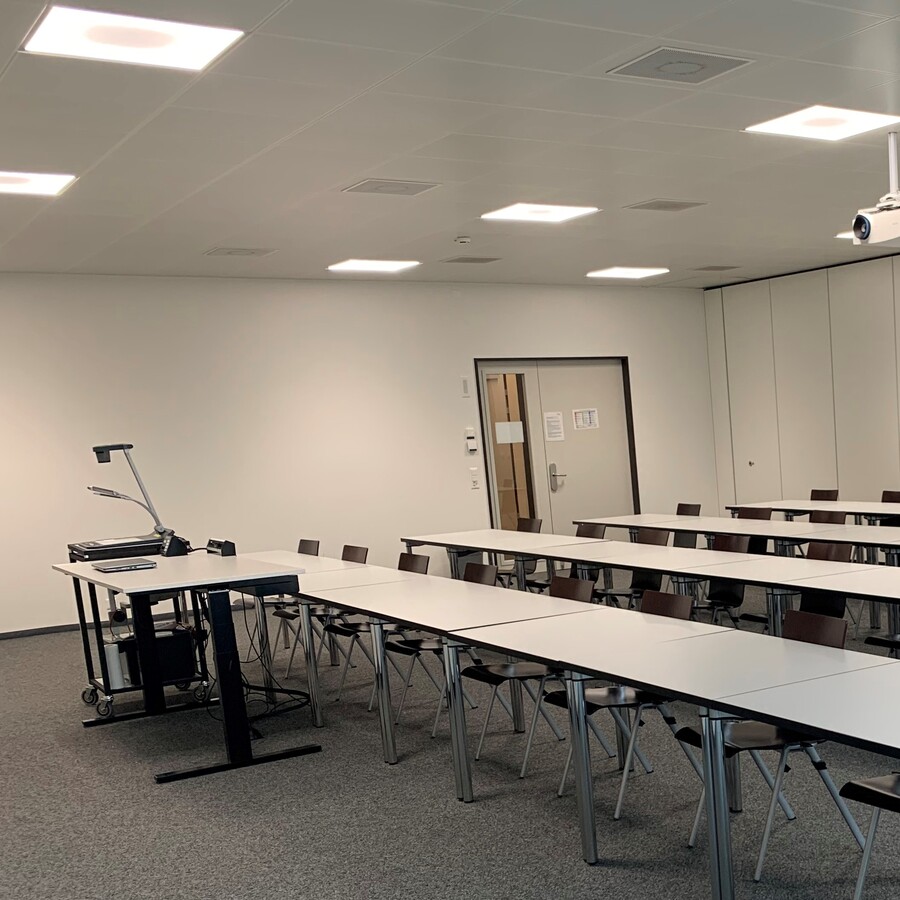 Hier finden Sie Bilder* der Aula, des Hörsaal, sowie unserer Seminar- und Sitzungsräume. Gerne zeigen wir Ihnen diese persönlich. Kontaktieren Sie uns, um einen Besichtigungstermin zu vereinbaren oder um weitere Fragen zu klären.
