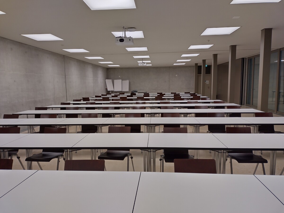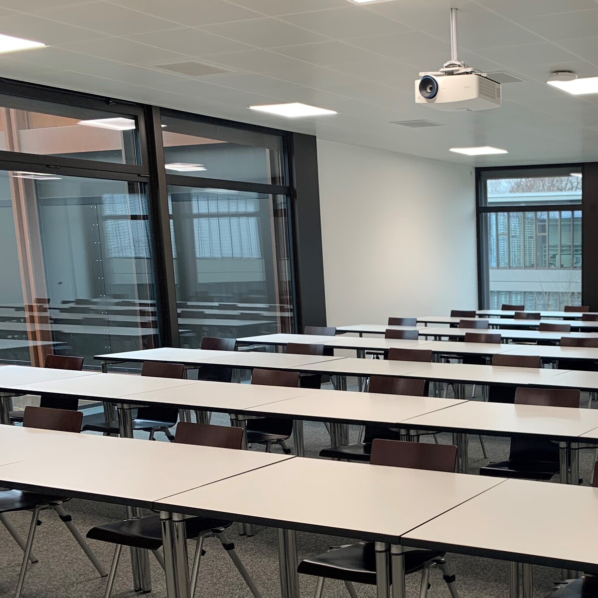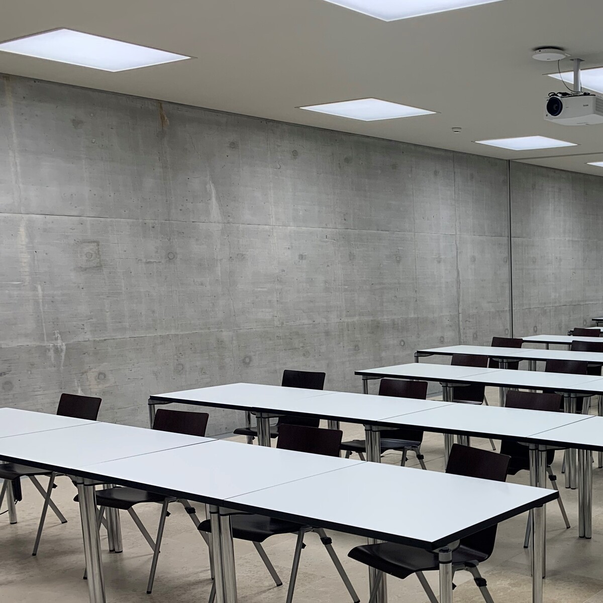 Hier finden Sie Bilder* der Aula, des Hörsaal, sowie unserer Seminar- und Sitzungsräume. Gerne zeigen wir Ihnen diese persönlich. Kontaktieren Sie uns, um einen Besichtigungstermin zu vereinbaren oder um weitere Fragen zu klären.