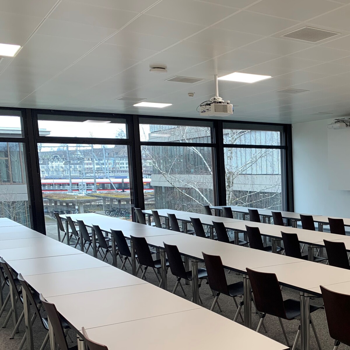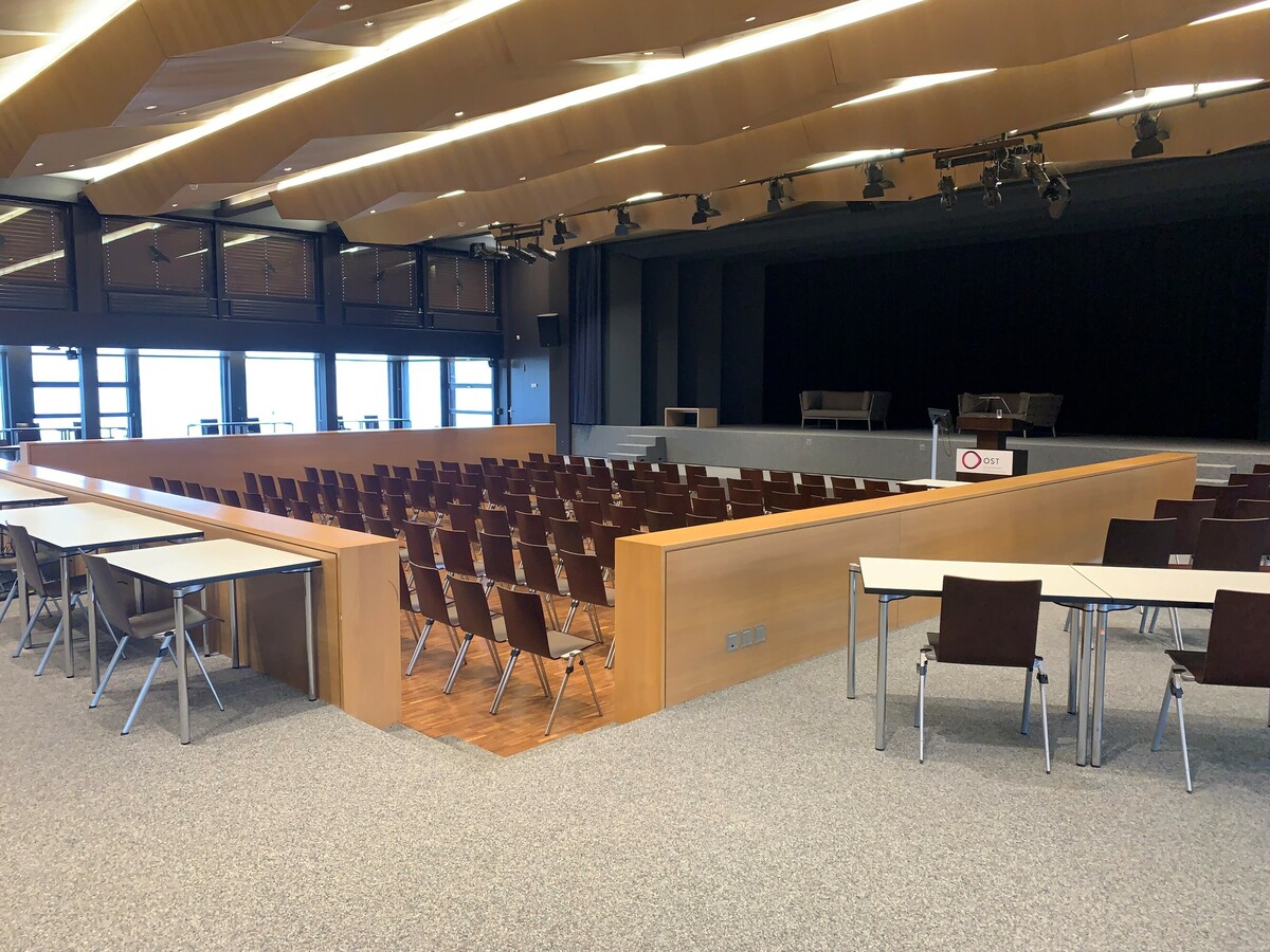 Die OST öffnet ihre Räume am Campus Rapperswil-Jona mit bester Aussicht auf den oberen Zürichsee auch für Aussenstehende – beispielsweise für Anlässe wie Seminare, Workshops oder Tagungen.
