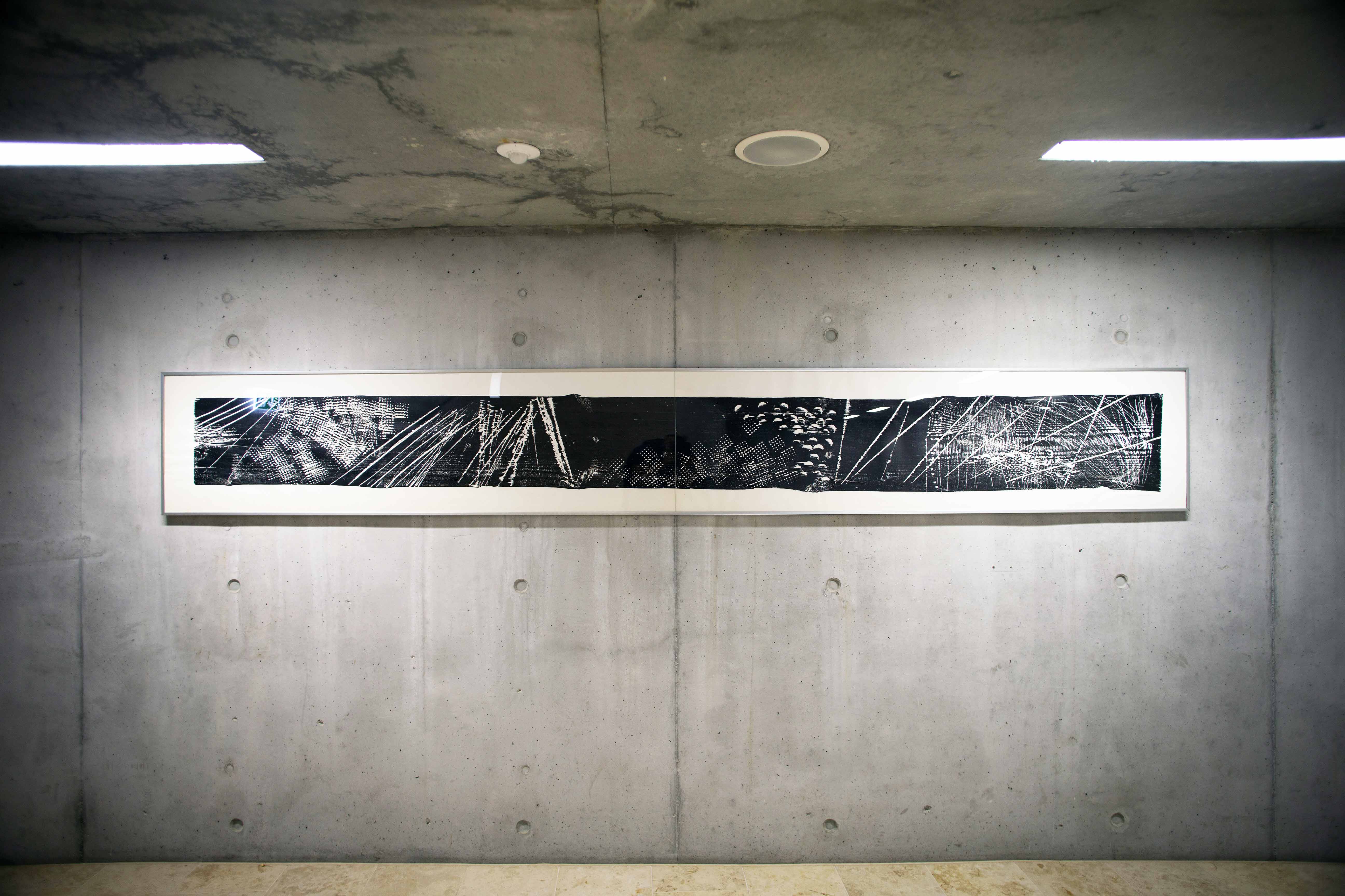 Bei einem Rundgang um die Bibliothek im 4. Obergeschoss begegnet man drei unterschiedlichen Druckserien des deutschen Malers und Objektkünstlers Günther Uecker (*1930). Die erste Gruppe, fünf in Weiss gehaltene Prägedrucke, mutet still und fragil an. Bei näherer Betrachtung sieht man, dass der Druckstock auf rhythmisch streng angeordneten Nägeln basiert, allesamt in die gleiche Richtung ein- und umgeschlagen. Der Nagel ist das prägendste Motiv und Material im Gesamtwerk Günther Ueckers. Uecker wird deshalb vielerorts als Nagelkünstler bezeichnet, denn mit seinem stetigen Nageleinschlag hat er die triviale, alltägliche Handlung des Nageleinschlages zu einer «kunstwürdigen Handlung» (Dieter Honisch) und damit die aktive Produktion von Kunst sichtbar gemacht. Der Nagel ist aber nicht einfach als Motiv oder Metapher der Gewalt zu verstehen, sondern als Strukturelement.