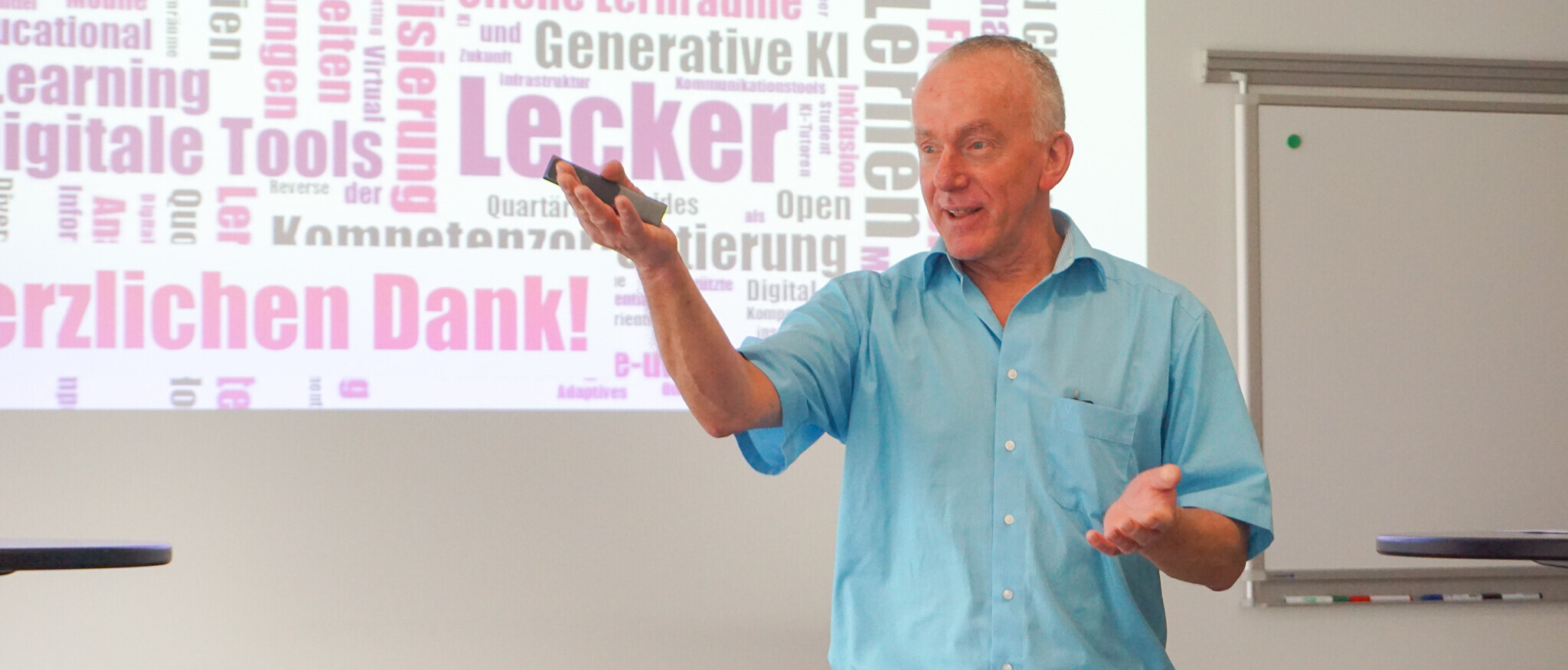 Die Zertifikatsübergabe fand dieses Jahr erstmals im Rahmen der Veranstaltung «Lehrreich und Lecker» des ZHB statt. Im Zentrum der Veranstaltung stand die Frage, wie Hochschullehre im Jahr 2030 aussehen könnte. Dr. Luci Gommers, Lehrbeauftragte für pädagogische Psychologie an der Universität St.Gallen, stellte in ihrem Referat Raumkonzepte für die Hochschullehre der Zukunft vor und Prof. Dr. Frieder Loch, Professor für User-Centered Design am Institut für Interaktive Informatik der OST, gab Einblicke in das Raumkonzept des Studiengangs «Digital Design». In die Zukunft schaute auch das Team des ZHB und diskutierte die Möglichkeiten von Digitalisierung und KI für individualisiertes und adaptives Lernen.