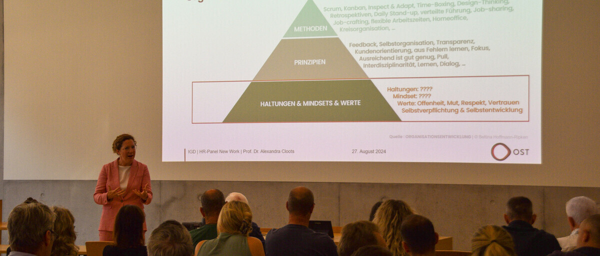 An der Tagung Gewerbe@OST gab Prof. Dr. Alexandra Cloots, Leiterin des IGD an der OST, Einblick in ihre Forschung und Praxisprojekte.