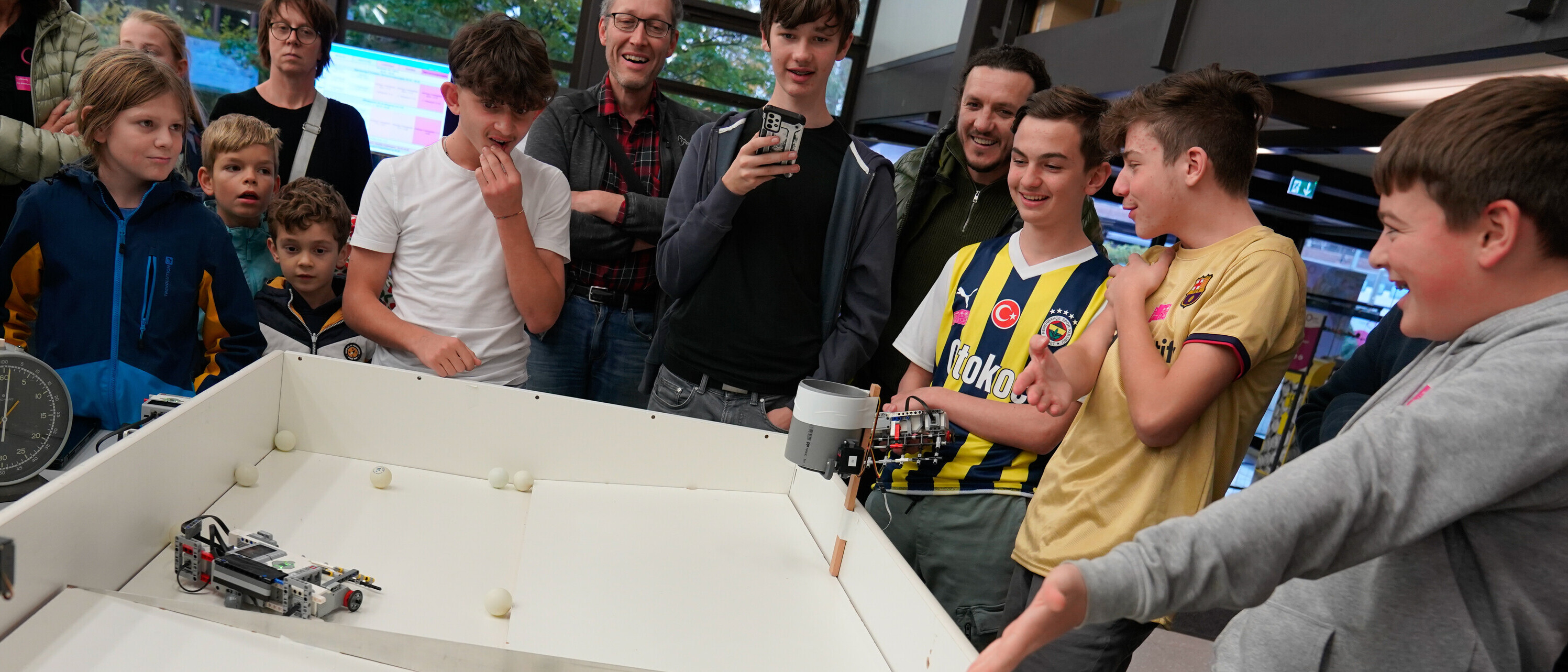 Notiert werden die Ergebnisse von jungen Schiedsrichtern an den Tischen. Sie studieren alle an der OST, die meisten Electrical and Computer Engineering (ECE, früher Elektrotechnik). Der Studiengang Electrical and Computer Engineering ist Veranstalter der RobOlympics. Robotik und intelligente Systeme sind Teil der Ausbildung für angehende Elektroingenieurinnen und -ingenieure. «Wir möchten mit den RobOlympics möglichst viele junge Menschen auf spielerische Art für Technik begeistern und so den Ingenieurnachwuchs langfristig fördern», sagte Andreas Breitenmoser, Elektrotechnik-Professor an der OST und Mitorganisator der RobOlympics am Samstag. «Was die Jugendlichen für die RobOlympics lernen, zählt zu den Zukunftskompetenzen. Roboter-Technologie und Künstliche Intelligenz sind zunehmend in unserem Alltag präsent. Angehende Ingenieurinnen und Ingenieure lernen bei uns an der OST, die technologische Zukunft mit all ihren Herausforderungen aktiv mitzugestalten.»