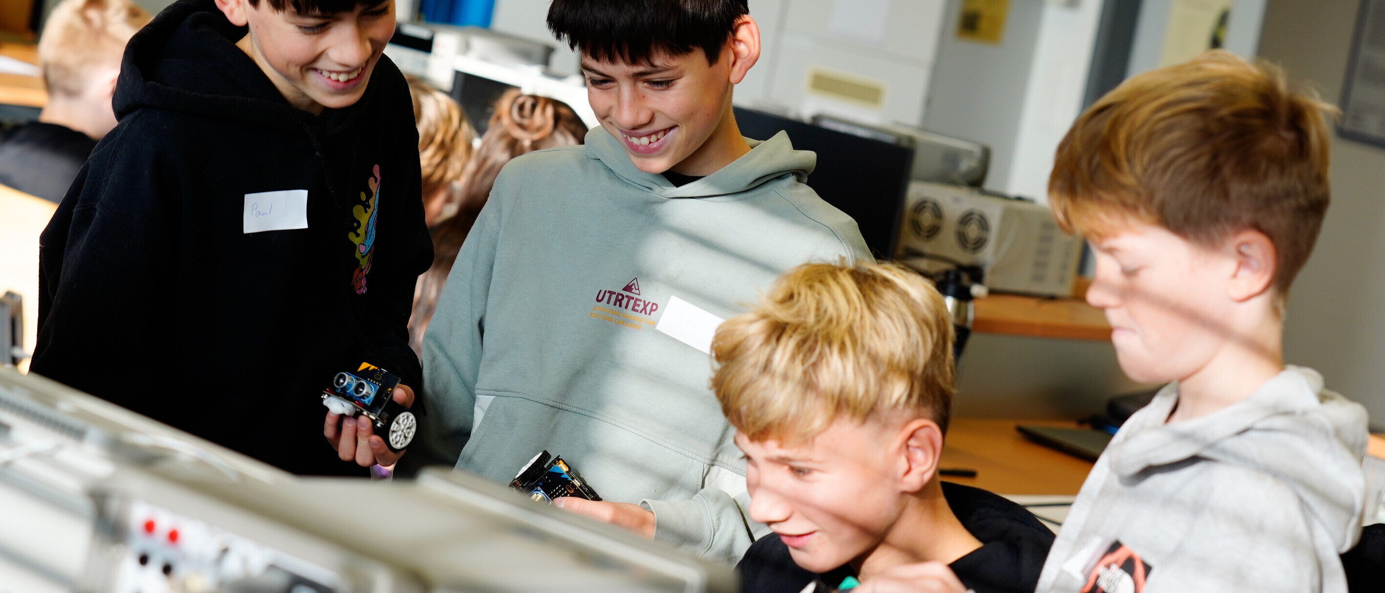 Die Vielfalt der Workshops war fast so gross, wie die fachliche Breite an der OST: Ob im Chemielabor, der Elektronikwerkstatt, im Physio-Therapie-Praxisraum oder beim IT-Sicherheits-Quiz – die Kinder konnten in Gruppen als Raumplanerinnen und Raumplaner ein Dorf planen, als Architektinnen und Architekten das eigene Traumhaus oder Traumzimmer entwerfen, einem Roboter das Sehen und Fahren beibringen oder in einer Alterswohnung technische Lösungen für ältere Menschen testen.