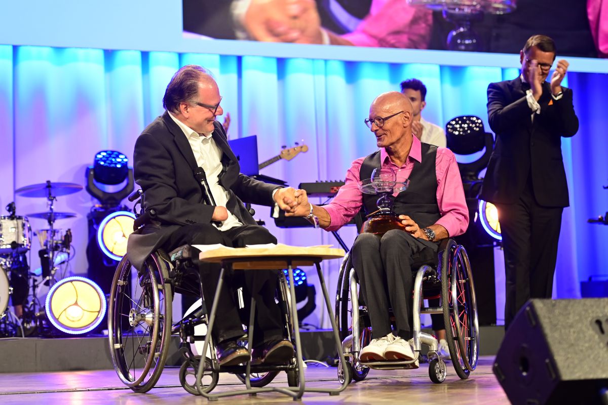 Alex Oberholzer (l) mit Rennrollstuhlsportler Heinz Frei am Swiss Diversity Award 2022. Bild: Sandra Blaser