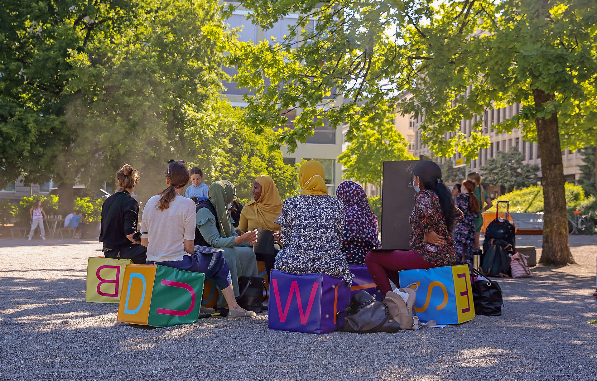 Entstanden ist das Programm in Zusammenarbeit mit Menschen aus unterschiedlichen Kulturen, verschiedenen Generationen sowie mit Kulturschaffenden aus der Region. Auch die Fachstelle Gesellschaftsfragen der Stadt St.Gallen ist als Kooperationspartnerin beteiligt. «Wir arbeiten mit der Methode des Living Lab. Alle Projektphasen sind partizipativ angelegt», erklärt Graber. Zudem sollen künstlerische Zugänge helfen, ein Bild einer Zukunft mit allen, die hier sind, zu gestalten und vorwegzunehmen. So verwandeln sich der Frauenpavillon und sein Aussenraum Ende August in einen Ausstellungsraum für die gesammelten Fragen mit Installationen von Anna Graber. «Das Wir in Fotos» zeigt fotografische Arbeiten zu Migrationserfahrungen entstanden in einem Projekt von Margit Bartl-Frank. Der Klangkünstler Roman Rutishauser verführt mit seiner Klavierinstallation zu einem Spiel mit dem eigenen unsichtbaren Spiegel. Die Tänzerinnen Soraya Emery und Mina Emery – Tochter und Mutter – setzen sich in ihrer biografischen Tanzperformance «The Space In Between» mit dem Leben in und zwischen zwei Kulturen – Marokko und der Schweiz – auseinander. Nach individuellen und kollektiven Sehnsüchten sucht die Choreografin Andrea Frei mit ihrem Tanzkollektiv LAˑMIˑLAˑSI. Die Tänzerin Elenita Queiróz spürt Formen der Rebellion auf und lädt Passantinnen und Passanten dazu ein, ihre eigenen Themen und eine dazu passende Bewegungsform zu suchen. Sarath Maddumage zeigt Malereien aus seiner Ausstellung «Leben statt Überleben». Und Fateme Tavakoi liest aus ihren Gedichten über Erfahrungen von Flucht und Migration.