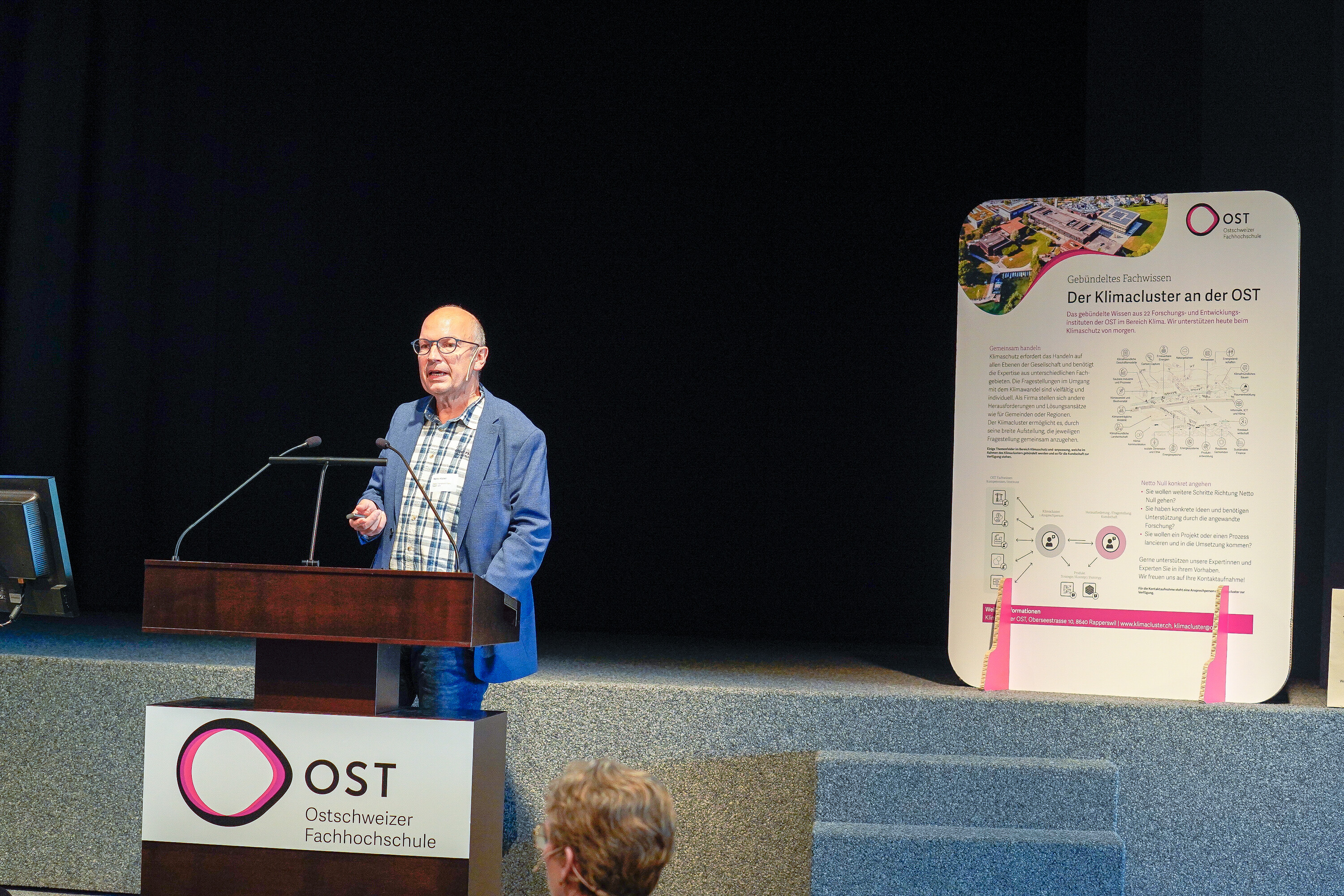 Die Klimakonferenz wird vom Klimacluster der OST organisiert. Die jährlich stattfindende Konferenz dient als Plattform für einen Dialog zwischen den verschiedenen Akteurinnen und Akteuren der Gesellschaft und der angewandten Wissenschaft. Die fünfte Klimakonferenz wurde von Susanne Kytzia, Professorin am IBU Institut für Bau und Umwelt und Leiterin des Interdisziplinären Schwerpunkts «Climate and Energy», moderiert.