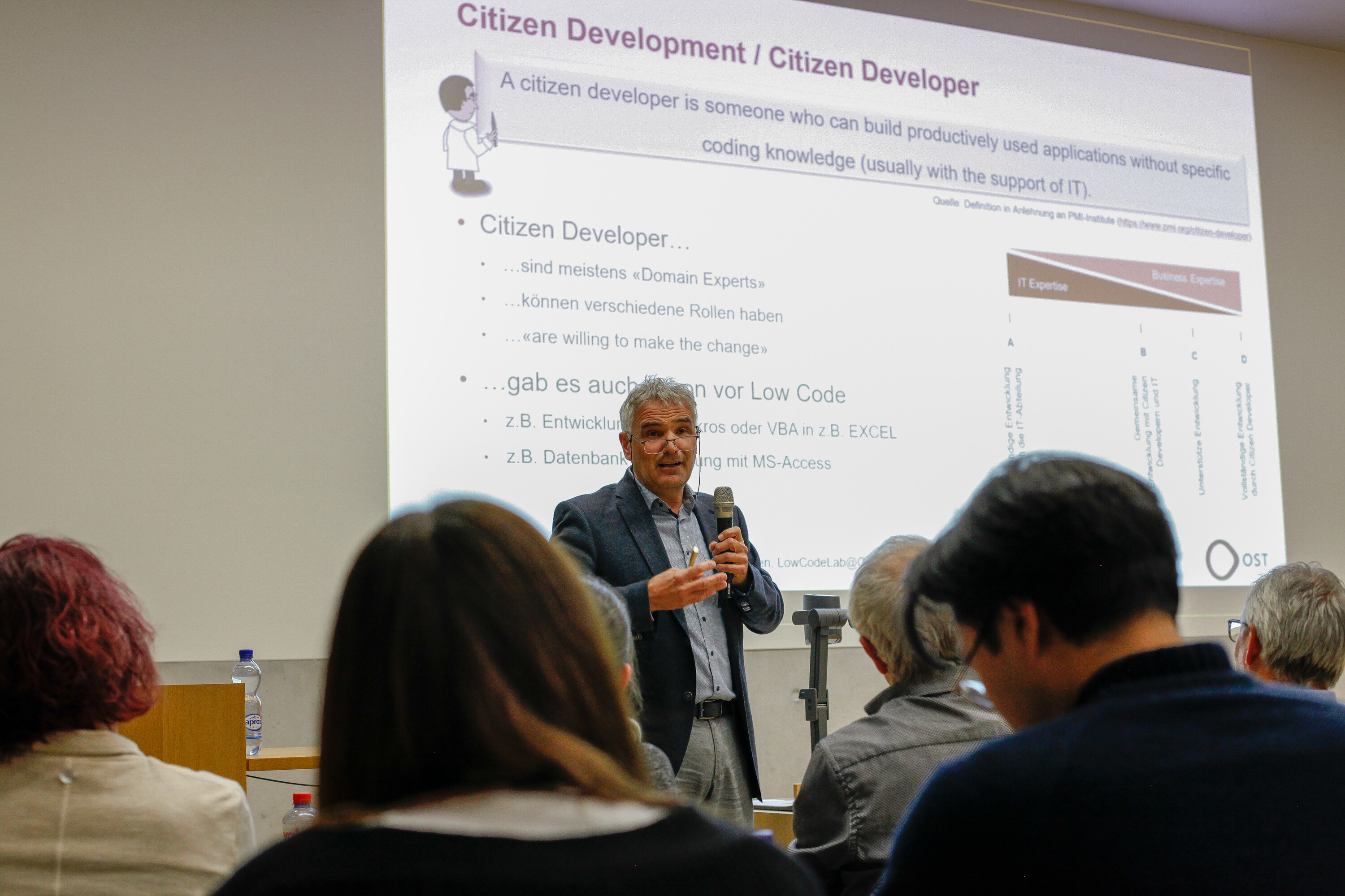 Gemeinsam mit LowCodeLab@OST, dem Kompetenzzentrum für innovatives Low Coding und strategisches Citizen Development, sollen Potenziale, notwendige Voraussetzungen und Auswirkungen Low-Code-basierter Softwareentwicklung untersucht und resultierende Möglichkeiten besser bekannt gemacht werden. Zudem sollen Erfahrungsaustausch, Weiterbildung und Vernetzung rund ums Thema gefördert werden.