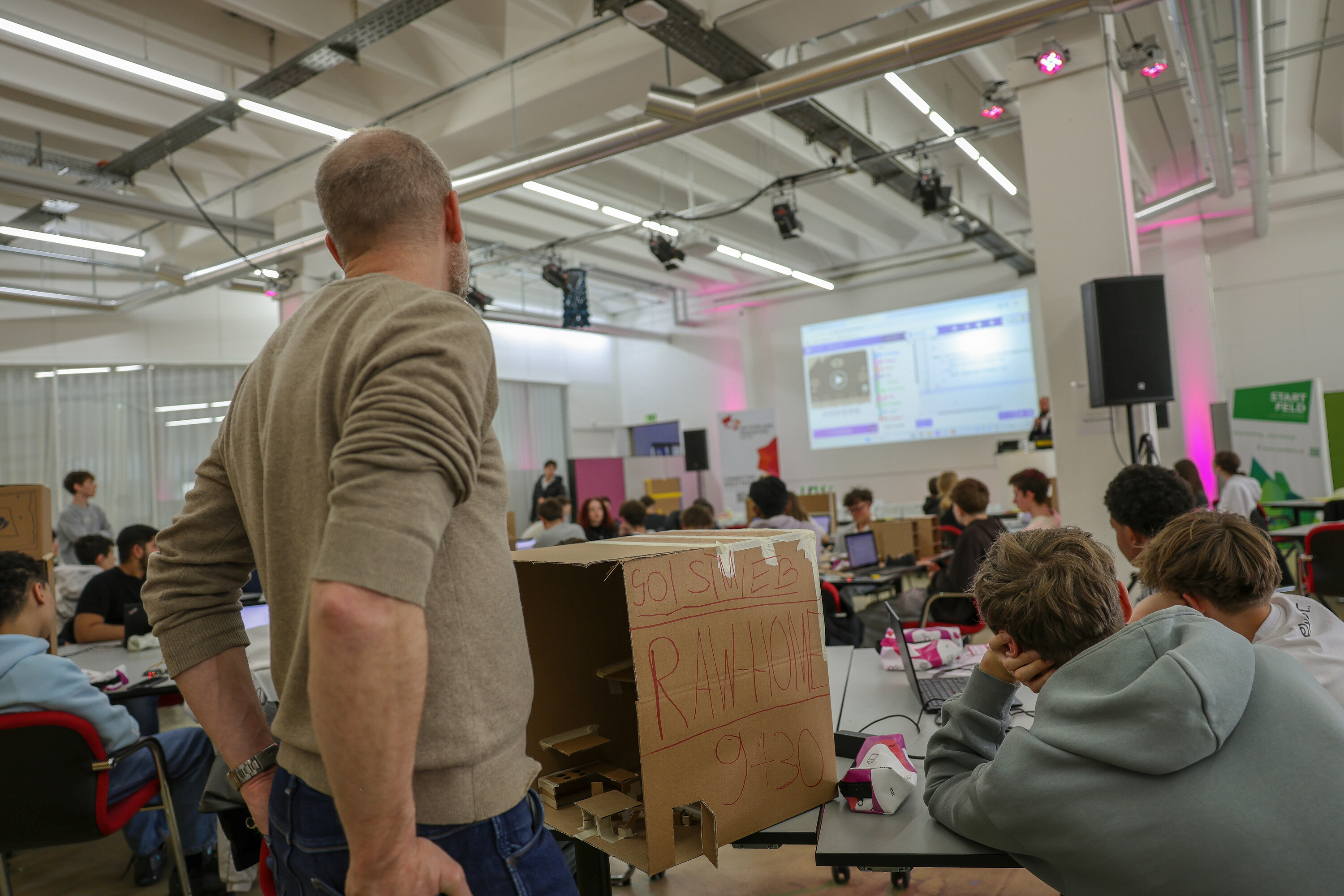 Ein Höhepunkt der Woche waren die FuturePitch-Workshops am 8. und 9. Mai, welche in Zusammenarbeit mit Smartfeld durchgeführt wurden. Jugendliche der Sekundarstufen I und II entwickelten dabei eigene Ideen zu den Herausforderungen der Zukunft. Ob nachhaltiges Wohnen, technische Unterstützung im Alltag oder das Leben in der Stadt von morgen – die Teilnehmenden arbeiteten mit viel Kreativität und technischem Gespür an konkreten Lösungen. Nach einer Einführung in die Themenbereiche gestalteten sie zunächst analoge Prototypen aus Karton. Im nächsten Schritt wurden diese mithilfe von Micro:Bits und Sensoren technologisch erweitert. Während der Workshop-Tage erhielten die Schüler:innen zudem Einblick in den Hochschulalltag der OST – Ostschweizer Fachhochschule, besuchten Forschungsinstitute und tauschten sich mit Studierenden aus. Auch das gemeinsame Mittagessen an der OST war Teil dieses lebendigen Austauschs zwischen Schule, Forschung und Gesellschaft.