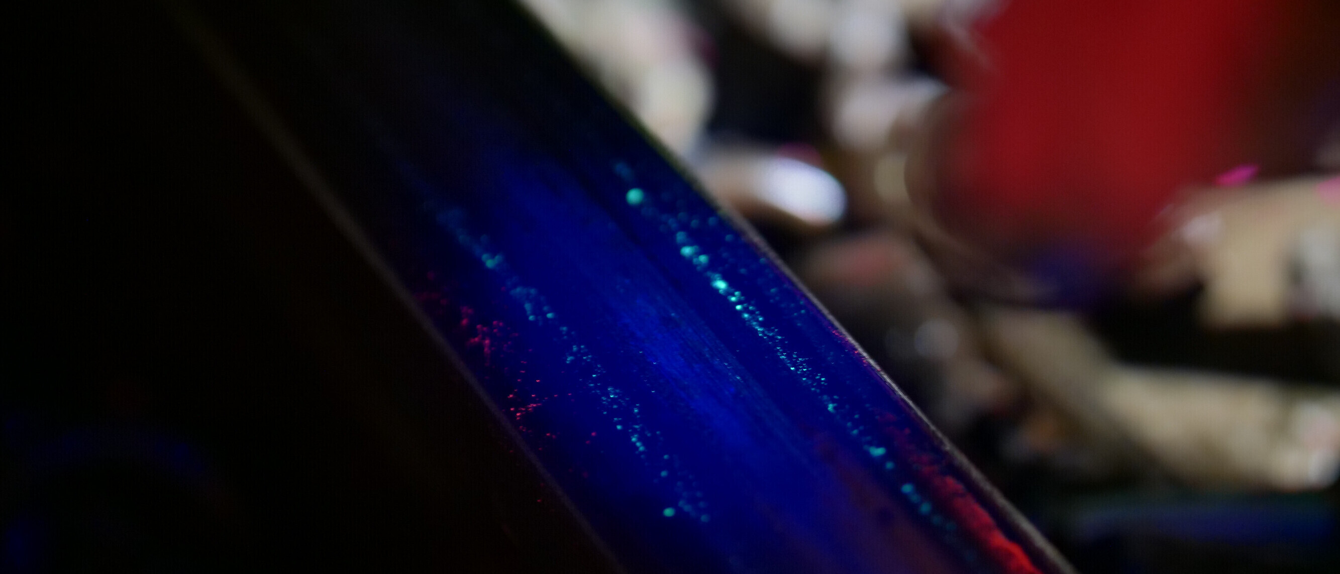 Eine Schiene nach der Reinigung mit Xanthan unter UV-Licht.