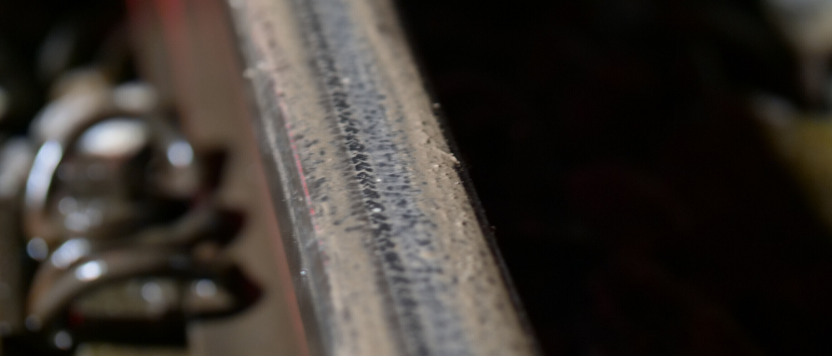 Ein Schienenstück nach der Reinigung mit Natron unter UV-Licht.