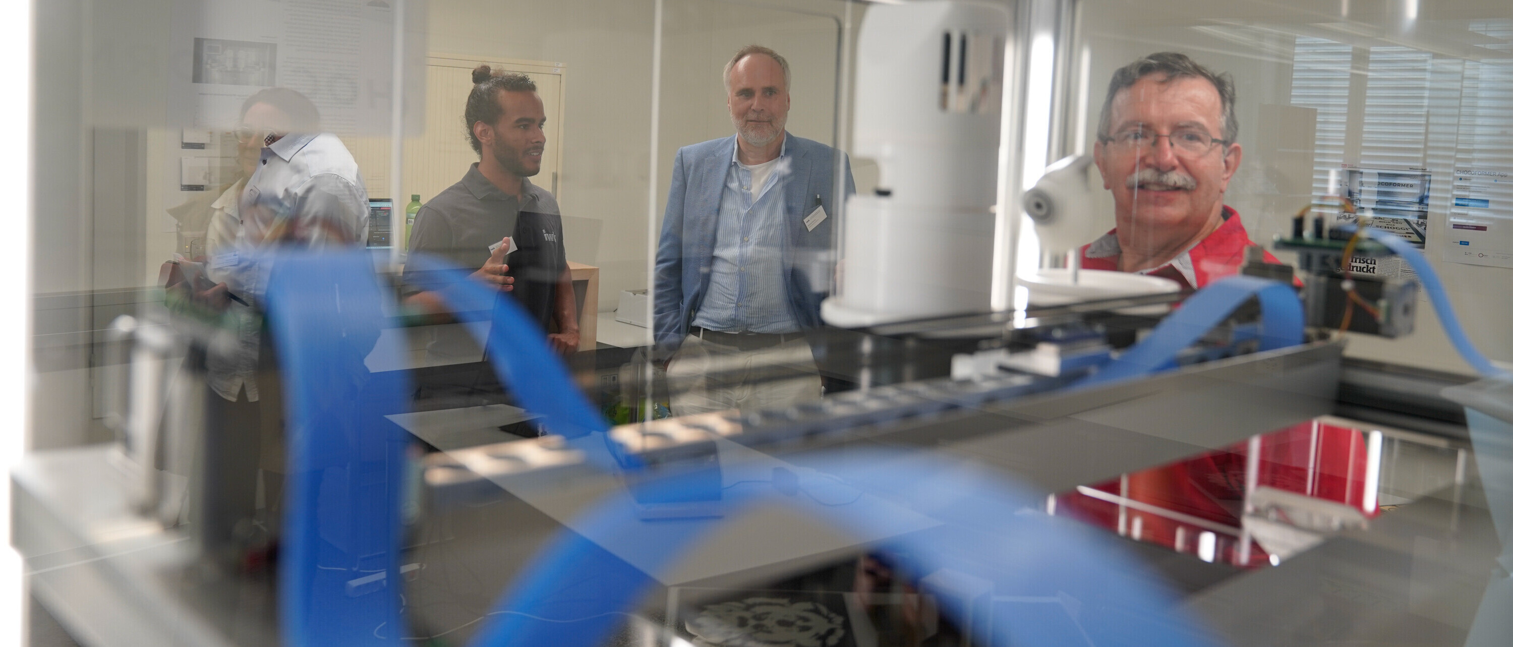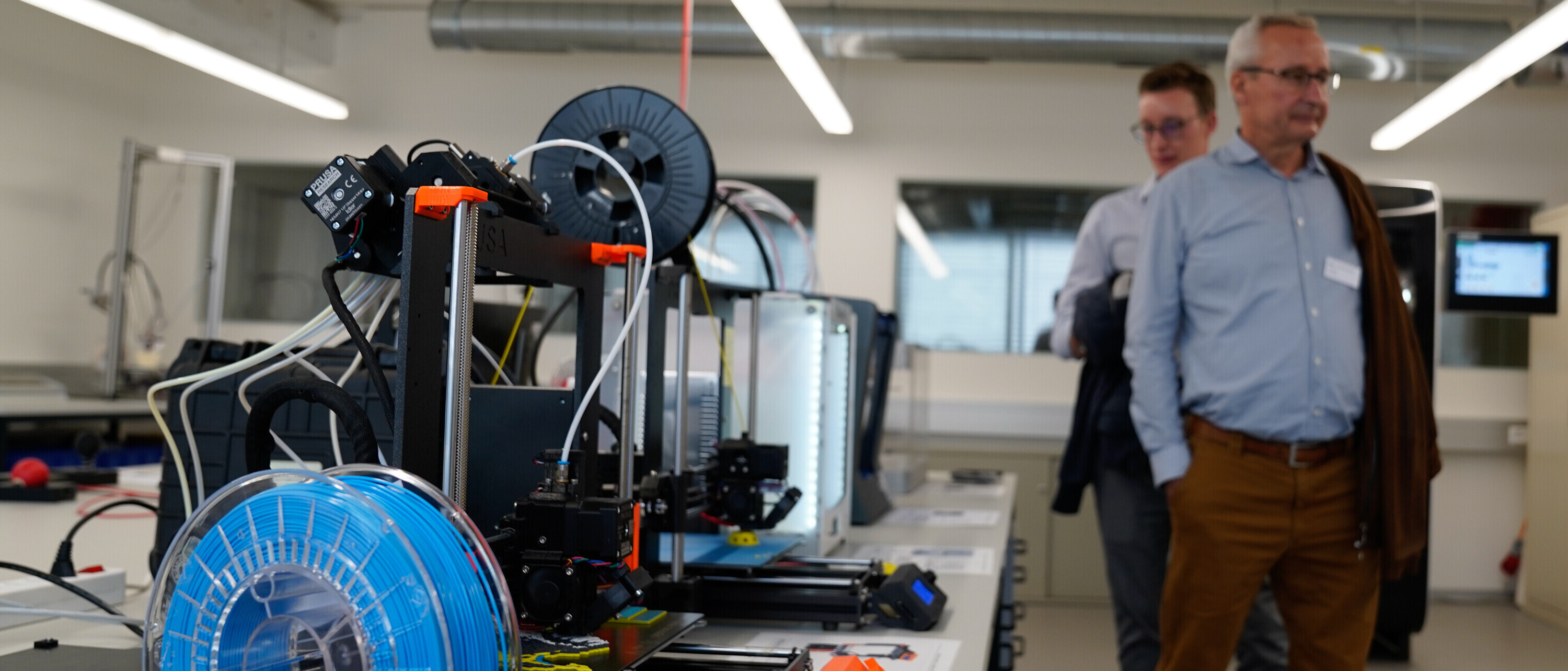 Nach den Vorträgen konnten die Besucherinnen und Besucher im Techpark im Eichwies in den Labors sowie in den auf drei Etagen verteilten, weitläufigen und grosszügig ausgestatteten Test-, Analyse-, Entwicklungs- und Produktionsräumen des IWK die neuesten Entwicklungen und Technologien der verschiedenen Fachbereiche erkunden. Von Spritzgiessen über Faserverbundtechnik und Leichtbau bis hin zu Kunststoff- und Metall-3D-Druck, mechanischen Systemen und Verbindungstechnik, mechanischen Prüfungen und Analytik sowie Fertigungstechnik für Metalle – an anschaulichen Prüfständen, Prototypen, Produktions-Demonstrationen und vertiefenden Fachgesprächen mangelte es nicht. Ergänzend wurden Laborvorträge zu ausgewählten Themen gehalten. Die Teilnehmenden konnten sich während rund drei Stunden im Techpark umsehen und auch benachbarte Institute wie beispielsweise das ILT Institut für Laborautomation und Mechatronik sowie die gut ausgestattete Werkstatt der OST ansehen.