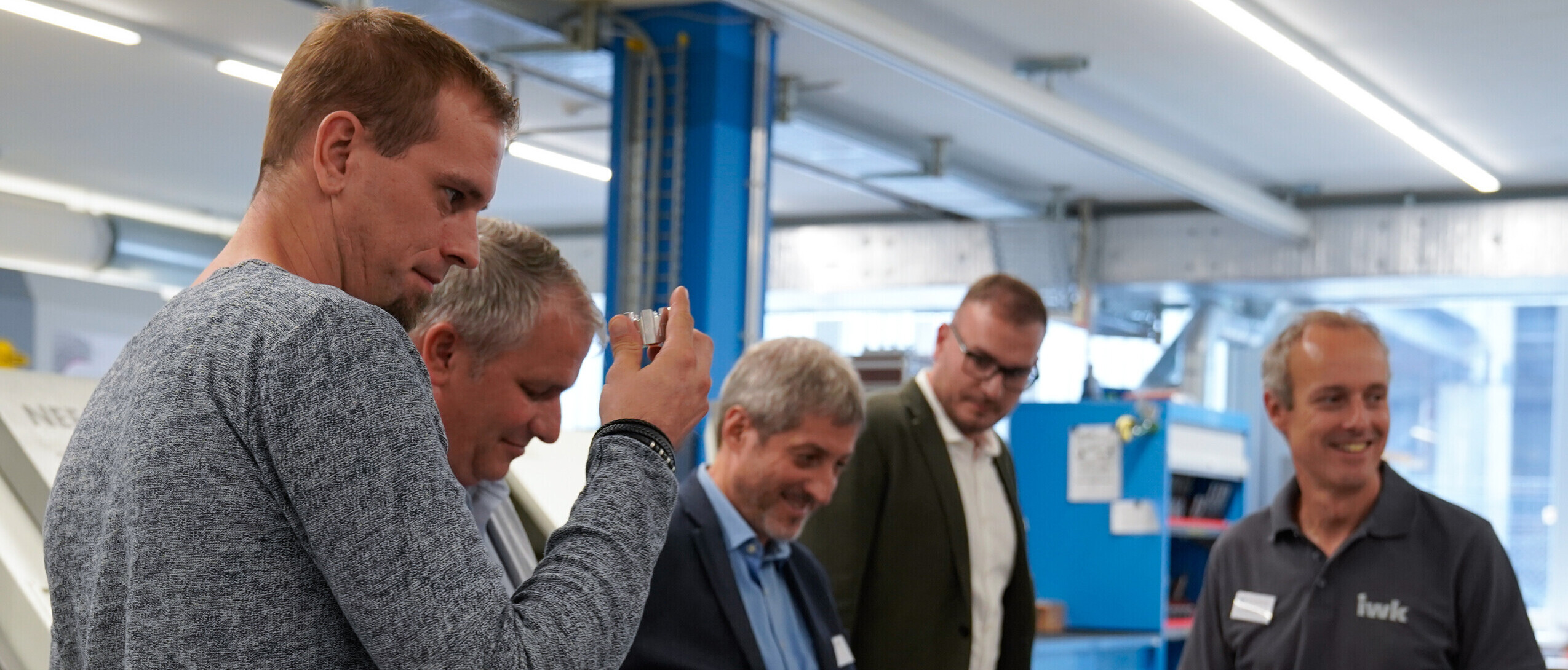 IWK-Institutsleiter Frank Ehrig informierte die Teilnehmenden über die immer engere, interdisziplinäre Zusammenarbeit des IWK nicht nur mit dem ILT, sondern beispielsweise auch mit dem IET Institut für Energietechnik sowie dem IFS Institut für Software. Die flexible Know-how-Bündelung erlaube es dem IWK, auch hochkomplexe, disziplinübergreifende und innovative Forschungsprojekte dank kurzer Wege an der OST effizient umsetzen zu können.