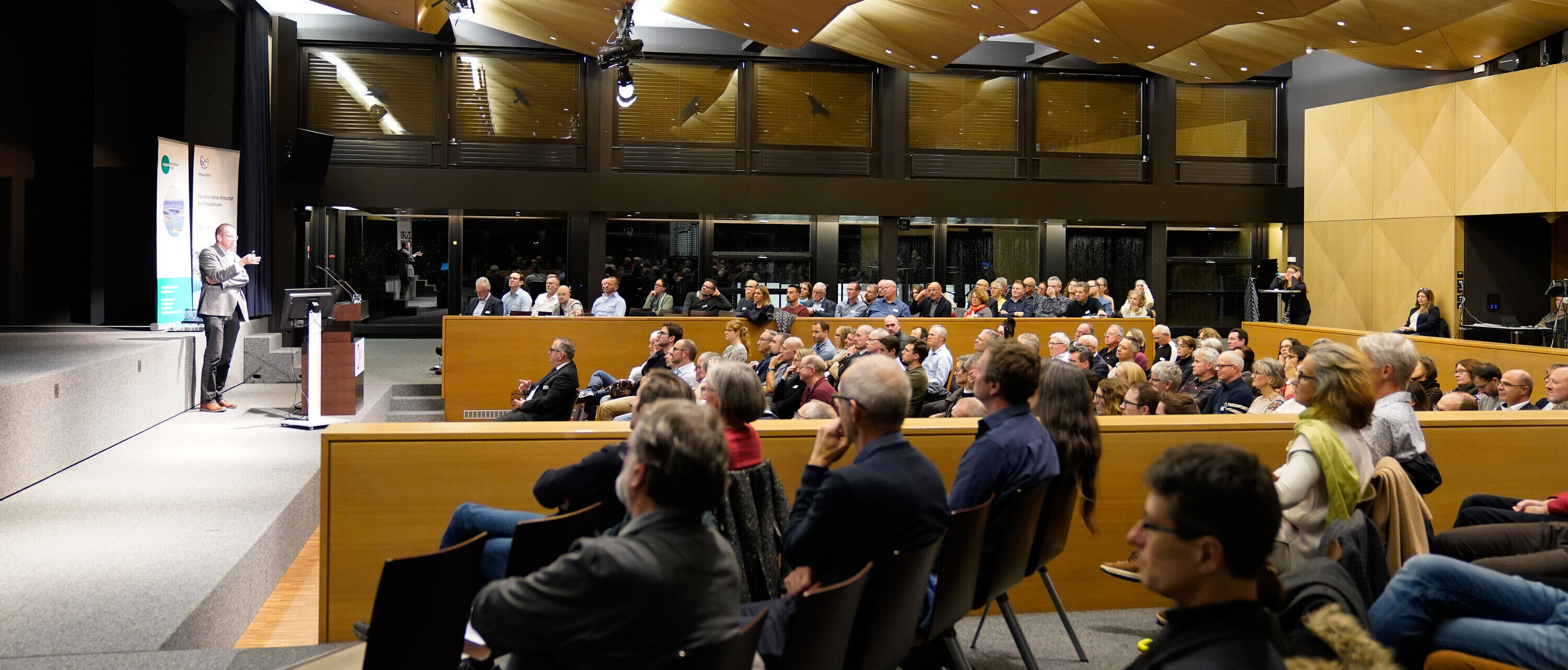 In eine ganz andere Richtung entführte Dr. Piet Spaak von der Eawag in Dübendorf das Publikum. Er berichtet über die Forschung am Bodensee, die den Einfluss verschiedener Stressfaktoren auf das Ökosystem und dessen Resilienz gegen Klimawandel, invasive Arten und die Nutzung durch den Menschen untersucht hat. Phosphorveränderungen, invasive Arten wie die Quaggamuschel und der Klimawandel setzen dem Bodensee zu. Die Resilienz einiger Organismen überrascht, aber die Herausforderungen sind tiefgreifend – das zeigt sich laut Spaak etwa im Extrem an den in wenigen Jahren massiv reduzierten Fangquoten für Felchen, die gegen Bedrohungen wie die sich rasend im See vermehrende Quaggamuschel und Stichlinge den Kürzeren zieht. Die Lehre: Der Schutz vor invasiven Arten ist eine menschliche Aufgabe, denn meistens ist er es, der fremde Arten in Ökosysteme einbringt, wo diese keine natürlichen Feinde haben. Die dadurch sinkende Biodiversität schwächt die Resilienz von Ökosystemen wie dem Bodensee. Oder wie es Spaak ausdrückt: «Wenn Sie unbedingt in zwei Seen segeln wollen, kaufen Sie zwei Boote – oder reinigen Sie es zumindest sehr gut, bevor sie es zu Wasser lassen».