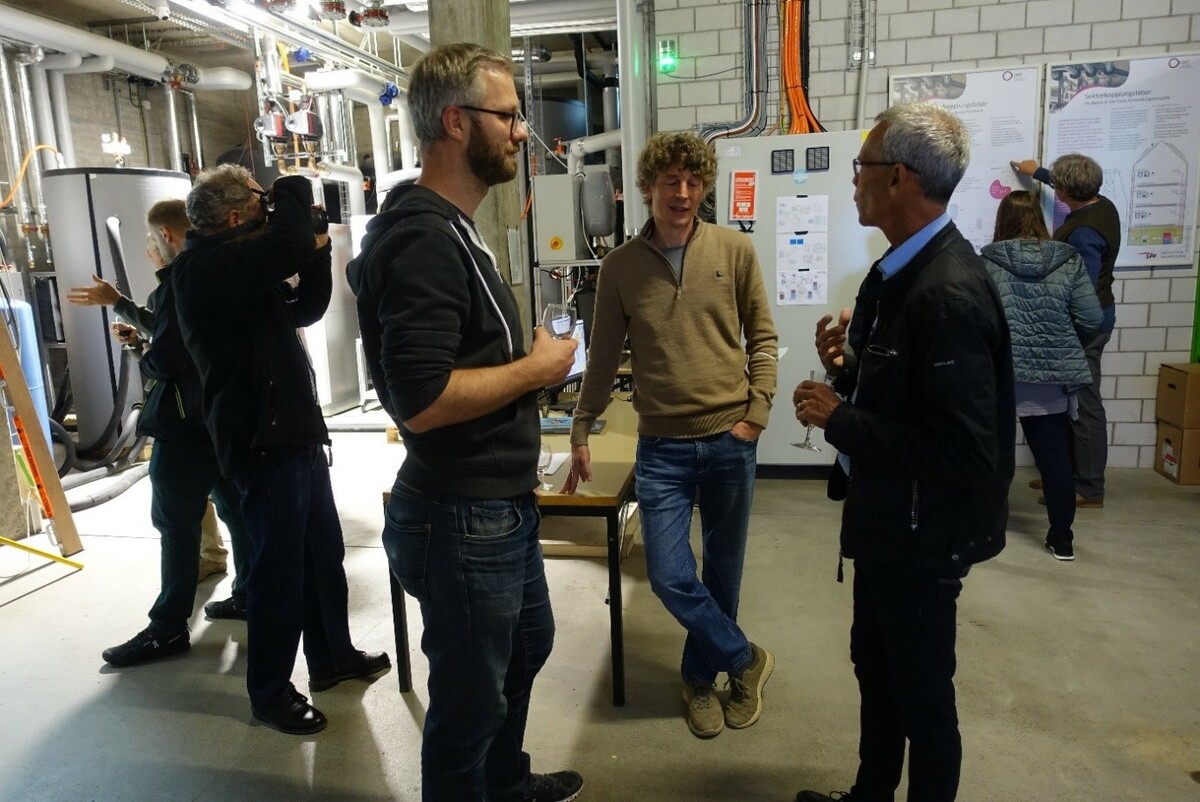 Das System ist zurzeit im neuen Sektorkopplungslabor aufgebaut, welches im Anschluss besichtigt werden konnte. Der Vortrag bildete damit gleichzeitig die Überleitung zum Apéro, bei dem der neue Prüfstand auf grosses Interesse stiess. Neben den im aktuellen Projekt benötigten Bereichen Wärme und Kälte inkl. Sonnenkollektoren, können im Prüfstand auch die Bereiche Strom (z.B. PV-Produktion und Haushaltsstromverbrauch) sowie Elektromobilität simuliert und emuliert werden. Der Prüfling wird inkl. Regelungs- und Kommunikationssysteme installiert. Jene Komponenten, welche nicht zum Prüfling gehören, werden vom Prüfstand laufend in Echtzeit simuliert und emuliert. Dank reproduzierbarer Randbedingungen werden so aussagekräftige Vergleiche ermöglicht und die Resultate liegen schneller und in viel höherem Detaillierungsgrad als bei Feldtests vor.