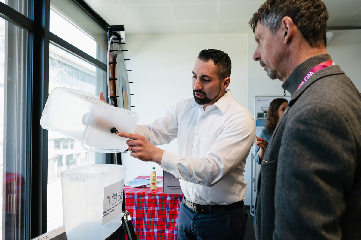 Das Symposium begann ungewöhnlich: mit einem gemeinsamen Eintauchen in den Zürichsee. «Wir wollten eine unmittelbare Verbindung zum Wasser schaffen, bevor wir über Zahlen und Strategien sprechen», erklärte Veranstaltungsleiterin Dorothee Spuhler. Der Schwumm symbolisierte das, worum es geht – Wasser als Lebensgrundlage dem Menschen näher bringen. Tatsächlich zeigte sich im Verlauf der Tagung, dass Wasser zwar im Überfluss erscheinen mag, jedoch längst nicht immer verfügbar ist, wenn es gebraucht wird. «Wir verbrauchen in der Schweiz pro Person täglich rund 4200 Liter Wasser – das Meiste davon indirekt durch Konsum von Produkten deren Herstellung viel Wasser benötigt, of in wasserarmen Regionen im globalen Süden stattfindet, erklärte André Podleisek, Nachhaltigkeitsverantwortlicher an der OST.