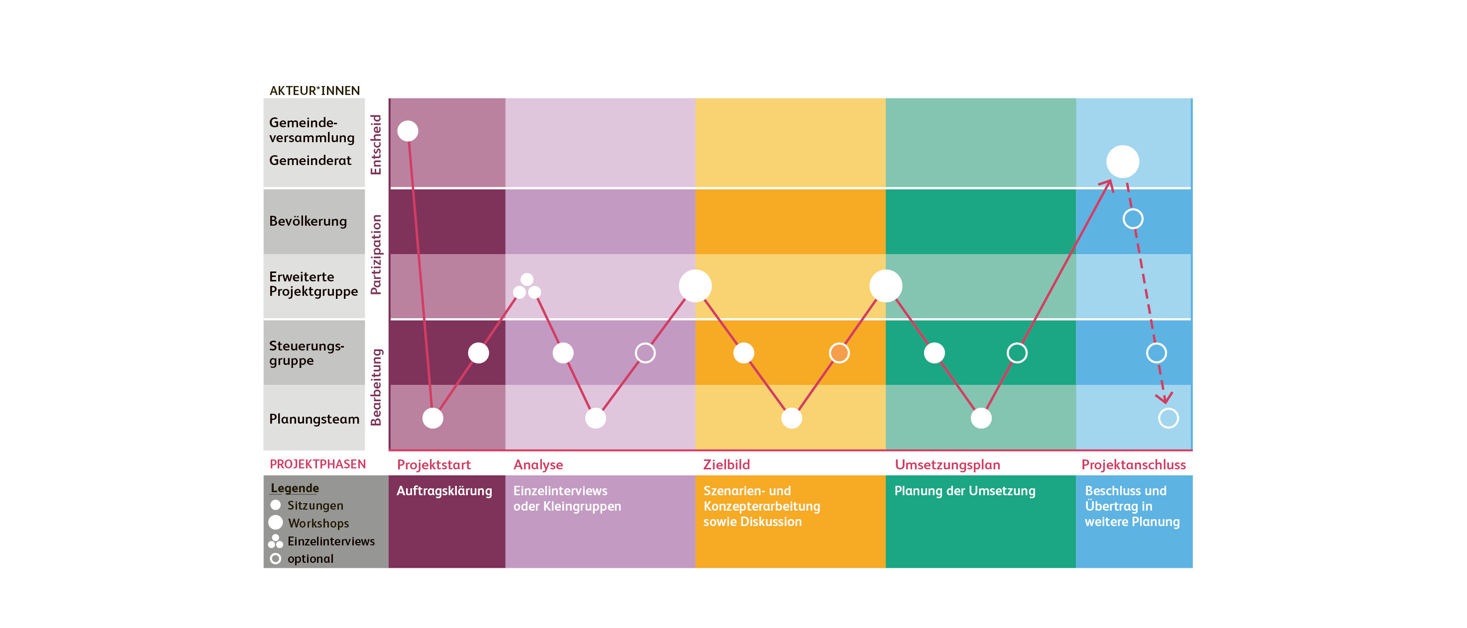 Hier setzt der neue Leitfaden an, der von der Ostschweizer Fachhochschule und der Hochschule Luzern entwickelt worden ist. Die Autor:innen haben eine Vielzahl verschiedenster Fallbeispiele aus der Praxis analysiert und dabei gewisse Muster und Kernelemente erkannt, die bei den konkreten Fällen fürs Gelingen oder Misslingen entscheidend waren. Die daraus entwickelten Musterprozesse mit unterschiedlichen Komplexitätsstufen bilden das Kernstück des nun vorliegenden Leitfadens für die Praxis.
