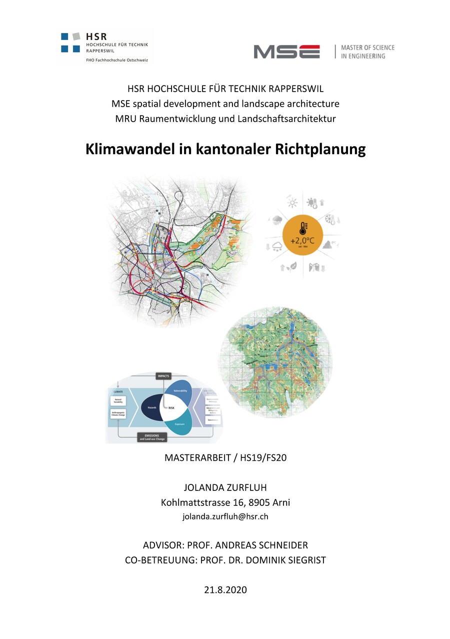 In ihrer herausragenden Masterthesis hat sich Jolanda Zurfluh mit der brandaktuellen Frage befasst, welchen Beitrag kantonale Richtpläne zu Klimaschutz und -anpassung leisten können. Und welche konzeptionellen, inhaltlichen und strukturellen Anforderungen sie hierfür erfüllen müssten. Nebst Grundlagenarbeiten wurde hierzu untersucht, inwieweit die 26 kantonalen Richtpläne die Thematik Klimawandel bereits beinhalten. Für die zwei Fallbeispiele der Kantone Aargau und Basel-Stadt wurden in Hinblick auf die Herausforderungen von Klimaschutz und -anpassung jeweils eine Richtplan-Anpassung und eine -Neukonzeption erarbeitet. Daraus konnten verschiedene Erkenntnisse gewonnen werden, welche für die Integration der Klimawandel-Thematik in die Richtplanung anderer Kantone hilfreich sein dürften.