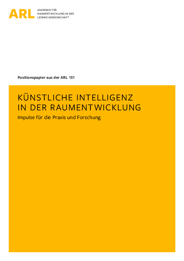 ARL – Akademie für Raumentwicklung in der Leibniz-Gemeinschaft (Hrsg.) (2024): Künstliche Intelligenz in der Raumentwicklung – Impulse für die Praxis und Forschung. Hannover. = Positionspapier aus der ARL 151.