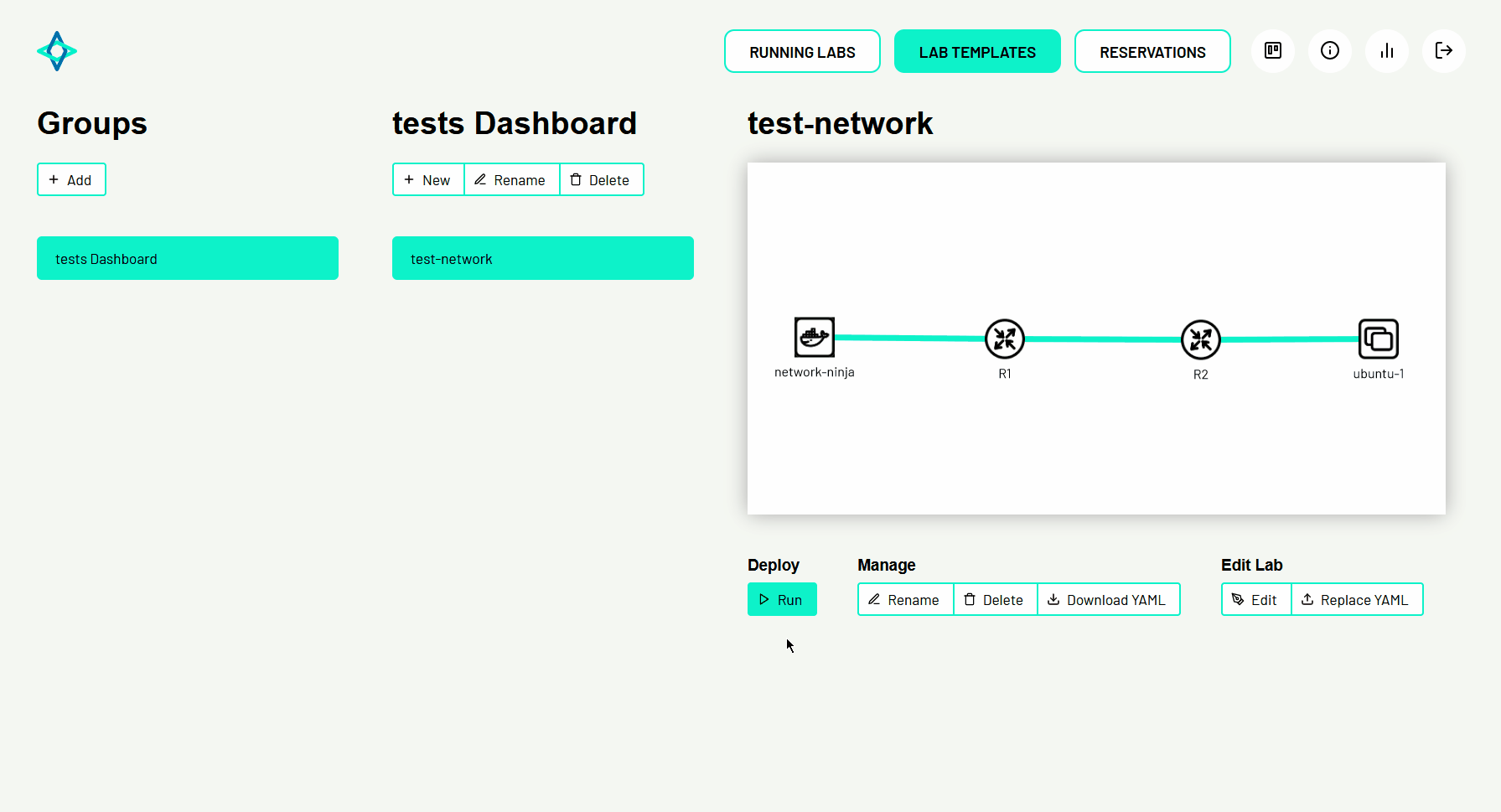 Ziel des Tools ist eine Plattform zu bieten, die es erlaubt Lab-Vorlagen mit einer bestimmten Topologie und Konfiguration zu erstellen, die anschliessend vielfach provisioniert werden kann.
