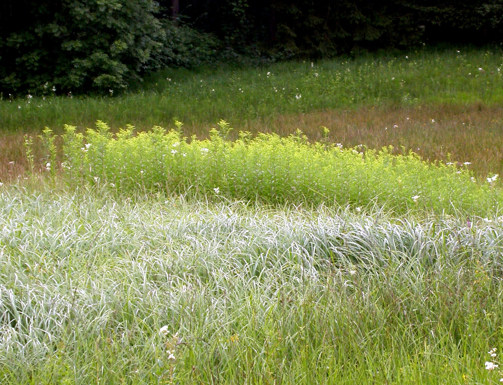 Die häufigsten invasiven Neophyten der Schweiz sind die Kanadische sowie die Spätblühende Goldrute (Solidago canadensis und Solidago gigantea). Die Pflanzen verbreiten sich mit Geschwindigkeiten bis zu 9102 km pro Jahr und treffen in der Schweiz auf keine Schädlinge. Die Goldruten haben sich vor allem an ursprünglich artenreichen Riedstandorten ausgebreitet. Besonders in Naturschutzgebieten werden die Goldruten daher intensiv bekämpft.