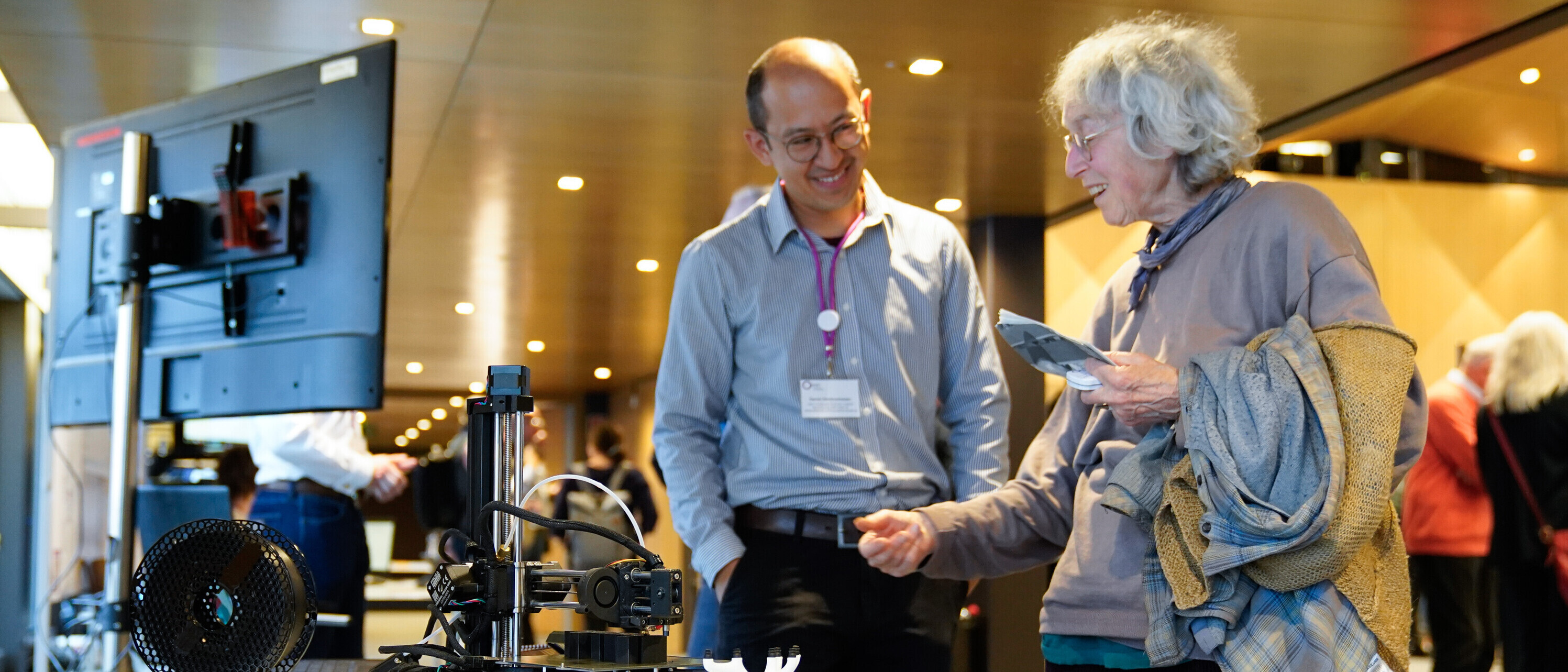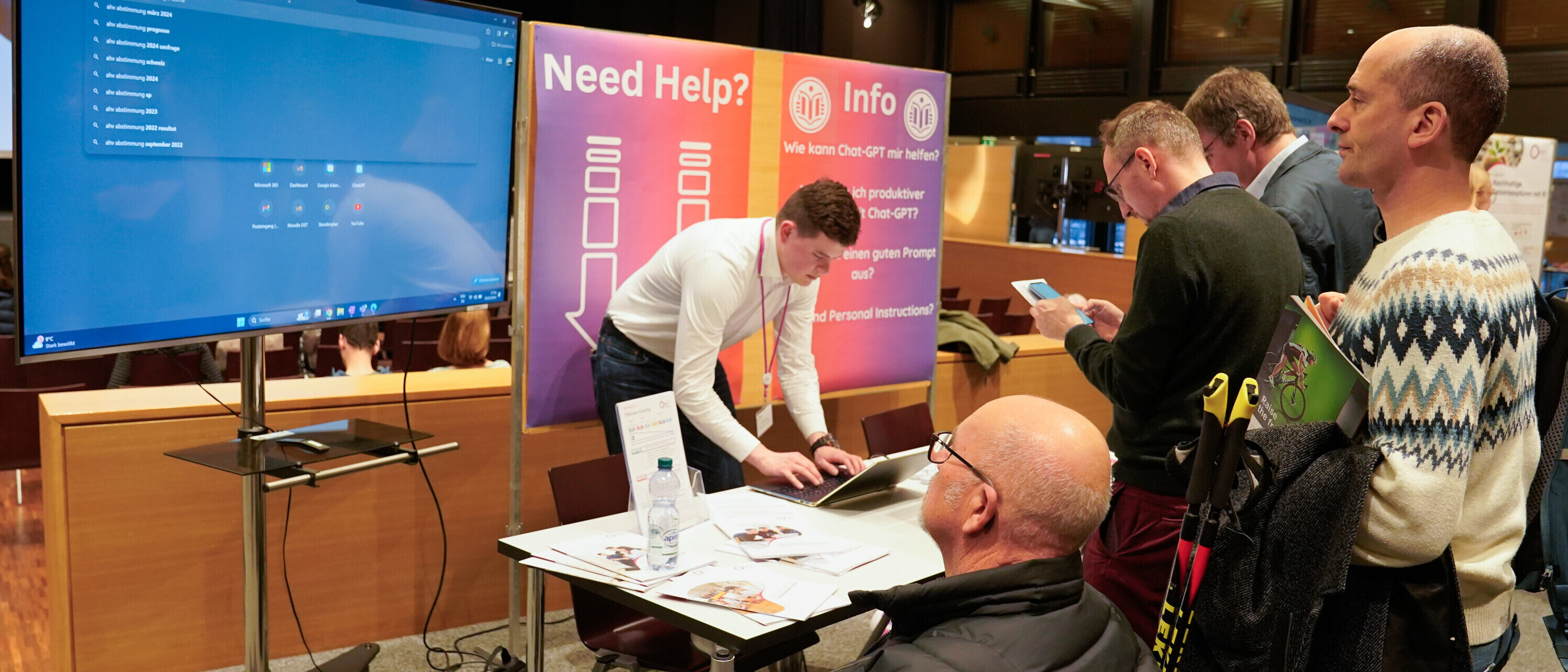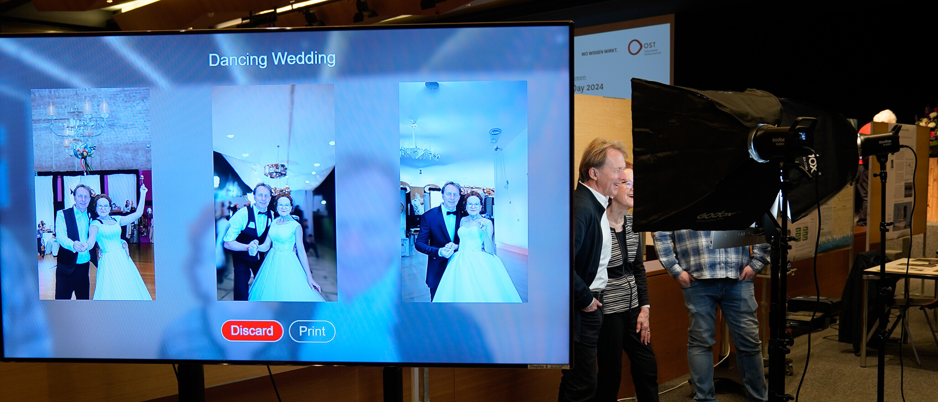 Das Thema künstliche Intelligenz wird an der OST sehr breit unterrichtet. In jedem Studiengang besteht die Möglichkeit, die Grundlagen der künstlichen Intelligenz kennenzulernen und KI anzuwenden. Diese Breite zeigte sich auch an der Ausstellung, bei der verschiedene Institute der OST KI-Projekte präsentierten: Von einer Fotobox, die auf witzige Weise Portraitbilder ergänzt über einen KI-Yogatrainer bis zur CO2-Reduktion in der Betonindustrie durch KI.