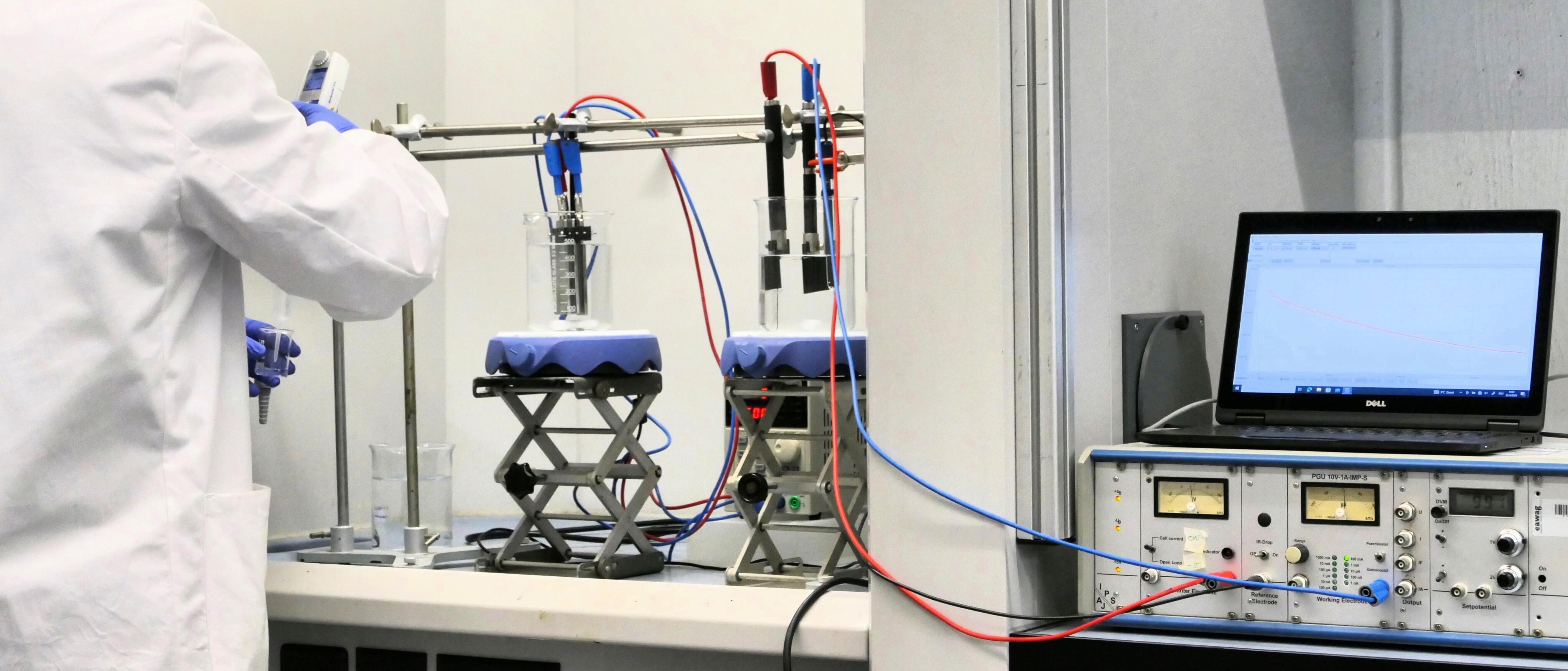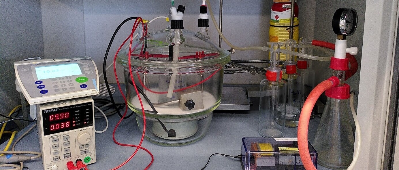 Elektrochemische Verfahren gewinnen in der Abwasserbehandlung zunehmend an Bedeutung. Mit Hilfe elektrochemischer Prozesse kann der Einsatz von Chemikalien und fossilen Brennstoffen reduziert werden. In unserer Fachgruppe untersuchen wir unter anderem die Behandlung stark nickelhaltiger Abwässer durch Elektrolyse, die basische Rückgewinnung von Phosphor aus Klärschlamm durch elektrochemische Struvitfällung, die elektrochemische nitritoxidation und die Elimination von Mikroverunreinigungen durch anodische Oxidation (siehe Advance Oxidation Processes). Die Elektrochemie ermöglicht darüber hinaus eine Vielzahl weiterer Verfahren wie die Elektrokoagulation oder das Elektro-Fenton-Verfahren.