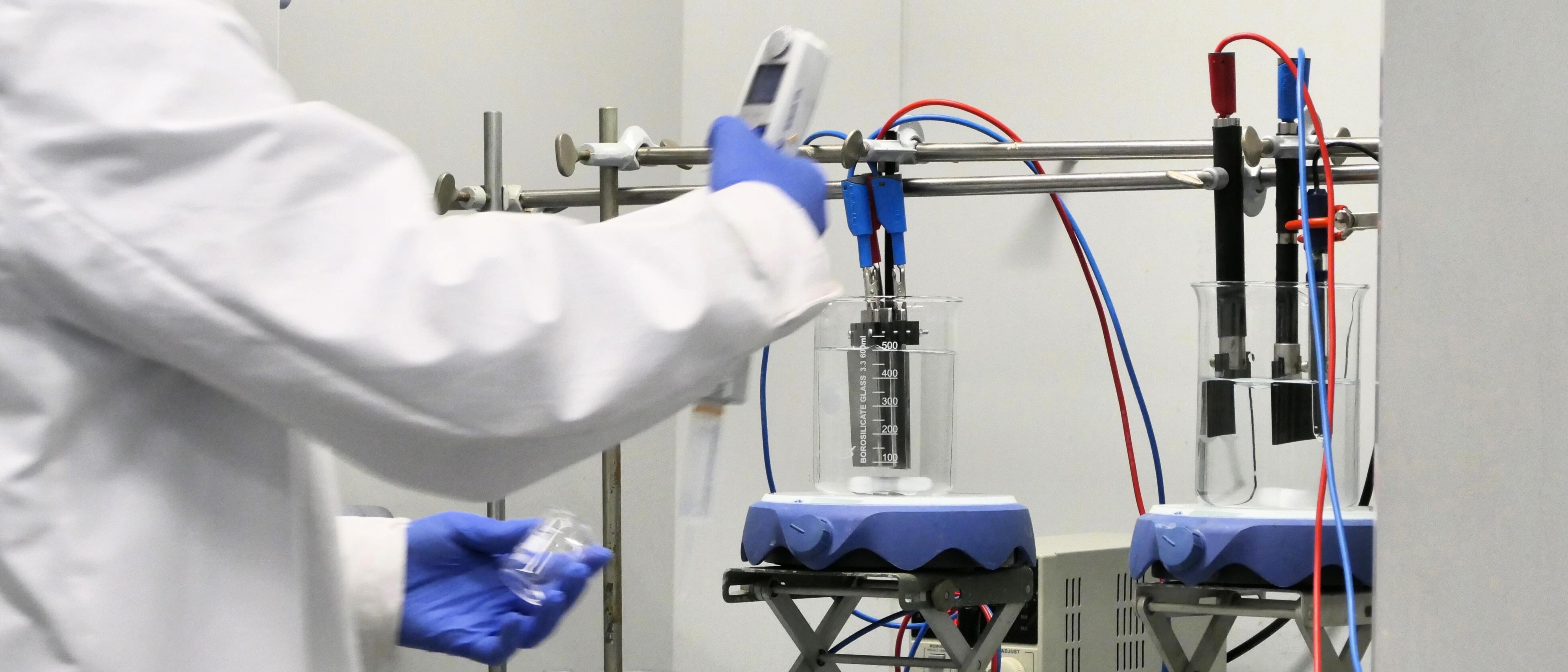 Im Analytikbereich wird der Erfolg der untersuchten Verfahren mit eigenen Analysegeräten gemessen. Zur Analyse von flüssigen und festen Proben stehen die üblichen Basisgeräte eines Chemielabors wie pH-Meter, Leitfähigkeitsmessgerät, Titrator, Schüttler und Trockenöfen zur Verfügung. Zudem können wir folgende Stoffe und Stoffeigenschaften in Flüssig- und Feststoffproben analysieren: