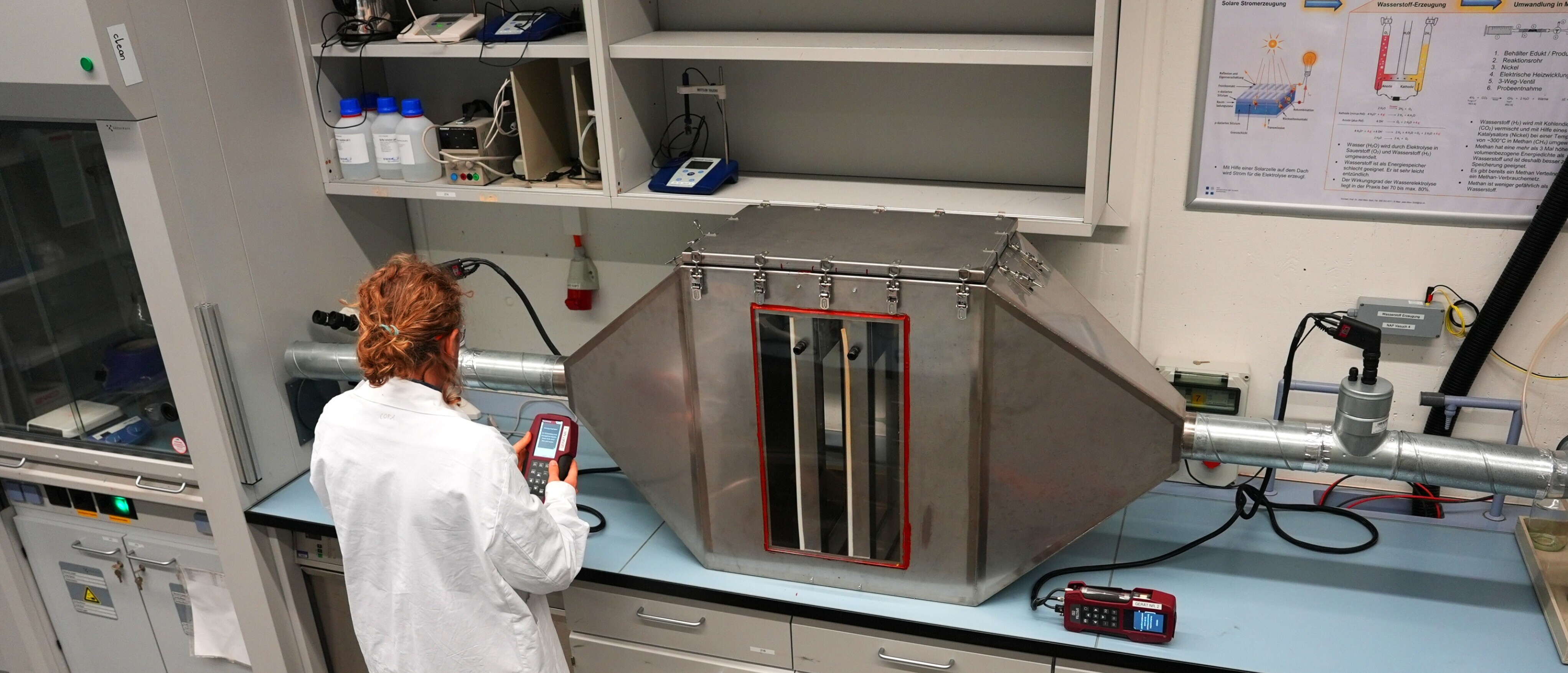 Im Versuchsbereich werden Experimente im Klein- bis Pilotmassstab durchgeführt. Wir stellen kontaminierte Luft, belastetes Wasser und Böden her oder beziehen diese von unseren Projektpartnern. Mit diesen Proben entwickeln wir neue Verfahren und untersuchen dann, wie wir die Reinigung optimieren können. Die zur Verfügung stehende Infrastruktur für die Durchführung von Versuchen umfasst:
