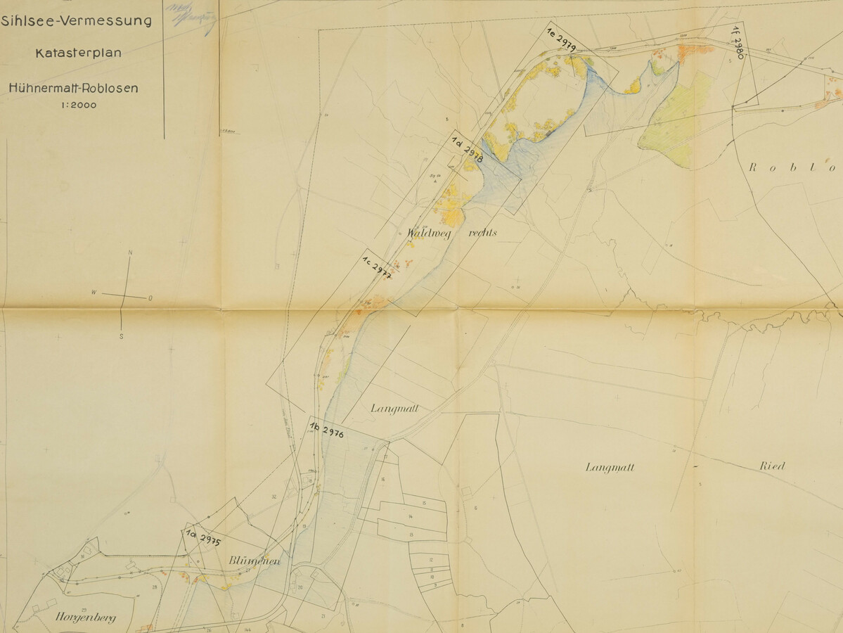Eine Übung in diesem Modul besteht darin, historische Pläne aus dem ASLA zu georeferenzieren. Dafür werden markante Punkte in der Landschaft (Kreuzungen, Ecken von Hausdächern, etc.) auf einer bereits bestehenden Karte/Orthofoto bestimmt. Danach werden die gleichen Punkte auf den historischen Plänen gesucht. Es werden mindestens drei Referenzpunkte benötigt, damit durch Berechnung ein entzerrtes Bild erstellt werden kann. Dank der Georeferenzierung auf das gleiche Bezugssystem können die Datenbestände aus verschiedenen Zeiten überlagert und direkt miteinander verglichen werden. Nebst dem Vergleichen unterschiedlicher Zeitstände wird auch das genaue Zusammenfügen von einzelnen Planausschnitten bei Grossprojekten wie beispielsweise der Uferbepflanzung des Sihlsees ermöglicht.