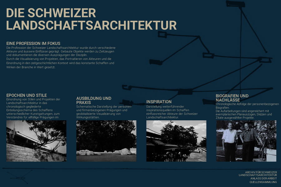 Im fünften oder sechsten Semester können die Studierenden ein selbst gewähltes Thema als individuelles Vertiefungsprojekt bearbeiten. Sie sind auch in der Wahl der Mittel frei. Dabei werden gern Themen aus dem Archiv gewählt. Unter Anleitung und Betreuung des ASLA – Teams wurden zum Beispiel die Pflanzenverwendung von Leberecht Migge, die historische Entwicklung der Plangrafik oder die Geschichte der Gartenbauausstellungen in der Schweiz untersucht. Eine besondere Arbeit war der Entwurf einer Homepage, mit dem Kathrin Häussermann die Geschichte der Schweizer Landschaftsarchitektur im Zusammenhang der Kulturgeschichte zeigte. Ein besonderes Anliegen war dabei, Studierenden und interessierten Laien die Zusammenhänge der verschiedenen Epochen und Nachlässe sowie die Bedeutung der einzelnen Exponenten der Gartenkulturgeschichte verständlich zu machen.