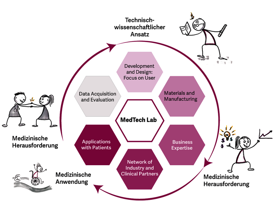 Das MedTech Lab unterstützt Partner dabei, klinische Herausforderungen mit technisch-wissenschaftlichen Ansätzen zu kommerziell erfolgreichen Lösungen zu bringen.