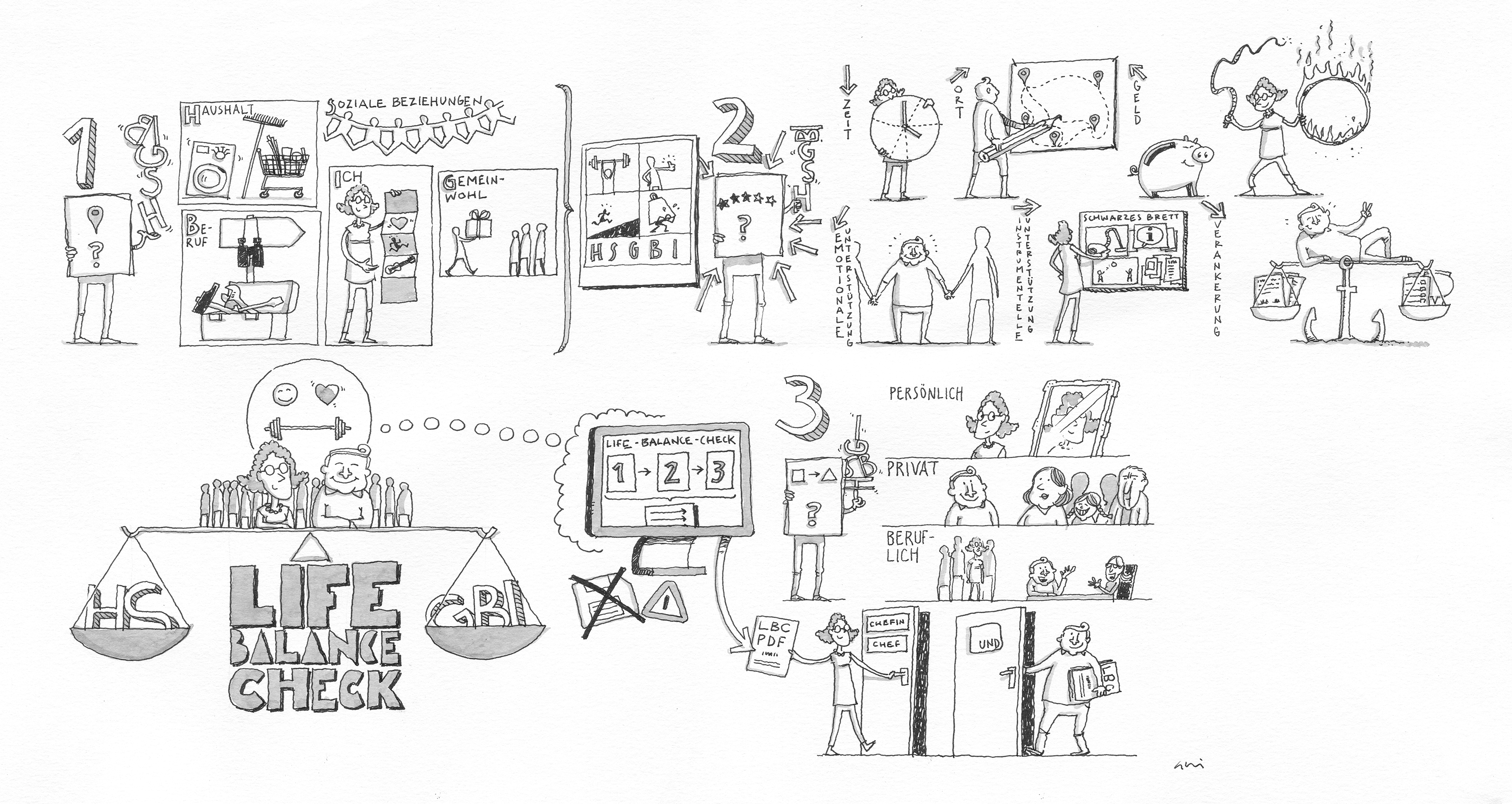 Je nach Lebenslage und Verpflichtungen benötigen Angestellte individuell gestaltete Arbeitsorganisationsmodelle. Das fordert Unternehmen heraus: Wollen sie als attraktive Arbeitgeber gelten, müssen sie auch ihre Arbeitsorganisation den Anforderungen der Mitarbeitenden anpassen. Gefragt sind Konzepte für eine lebenslagen- und generationenspezifische Life-Balance, mit deren Hilfe die unterschiedlichen Phasen des Berufslebens durch passgenaue Arbeitsorganisationsmodelle gemeistert werden können – all dies leistet der Life-Balance-Check (ehemals Vereinbarkeitssimulator).