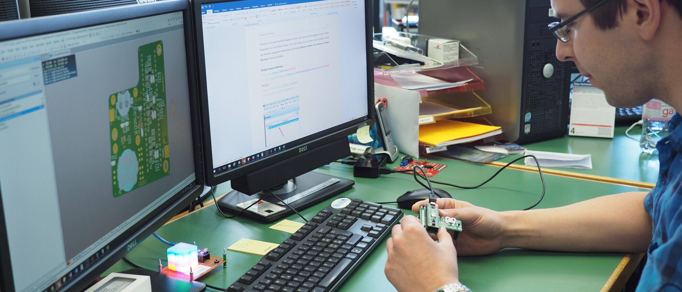 Digitale Elektronik mit FPGA ist an der OST ein zentraler Baustein in Forschung und Lehre. FPGAs ermöglichen – anders als klassische Mikroprozessoren oder Mikrocontroller – hochfrequente I/O‑Verarbeitung auf zahlreichen Kanälen in Echtzeit. Sie gelten als „poor man’s ASIC“, bieten jedoch höchste Flexibilität dank on‑chip Logik, integrierter Prozessor‑Cores und vielseitiger Schnittstellen wie Zynq, Cyclone V oder proASIC3. Unsere Studierenden und Forschenden nutzen FPGAs für digitale Signalverarbeitung, Hardware‑Prototyping, SoC‑Design und anspruchsvolle Projekte – etwa schnelle ADC‑Implementationen oder AI‑Beschleuniger. Durch interdisziplinäre Ansätze verknüpfen wir Analog‑, High‑Frequency‑ und Digitalelektronik. Unser Ziel: praxisnahe Lösungen für Industriepartner und Forschung auf Spitzenniveau.