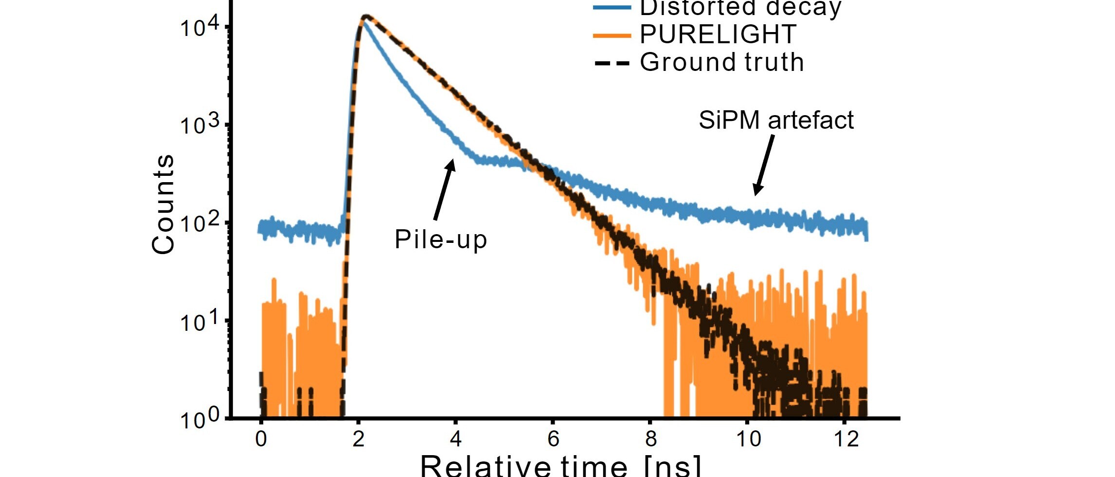 Ein Problem bei schnellem TCSPC ist, dass nicht alle Photonen bei hohen Lichtintensitäten erfasst werden können, weil sich die elektrischen Puls-signale des Photonendetektors überlagern (Pile-up Effekt). Dieser Effekt führt zu Verzerrungen in der statistischen Auswertung und somit zu Messfehlern. Dank der erfolgreichen Zusammenarbeit zwischen dem IMES, Universität Zürich und dem Industriepartner Prospective Instruments GmbH konnte ein Algorithmus entwickelt werden, der erstmals den Pile-up Effekt vollständig korrigiert. Die volle Funktionalität konnte mit einem Prototypen verifiziert werden und der entwickelte Algorithmus wird patentiert.