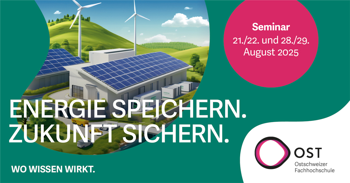 Im August 2025 bietet die OST wieder das beliebte viertägige Weiterbildungsangebot «Energiespeicher» auf dem Campus Rapperswil an.