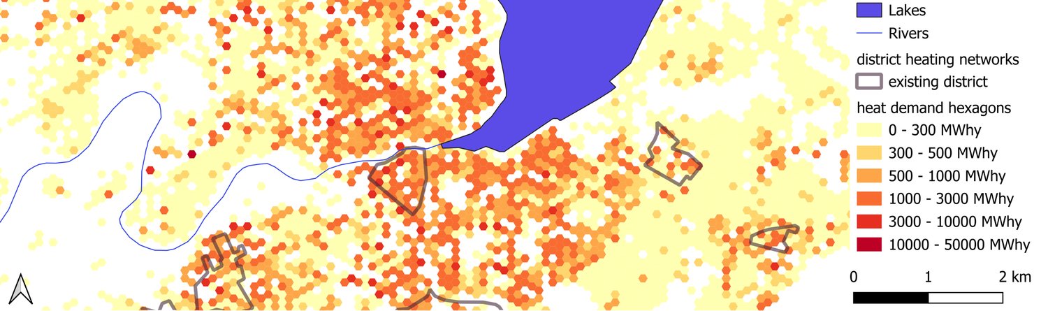 Der Bottom-up-Ansatz basiert auf dem optihood-Optimierungs-Tool (optihood) in Verbindung mit GIS-Daten. Auf diese Weise werden wir in der Lage sein, die notwendigen lokalen Gegebenheiten zu berücksichtigen, wobei wichtige Aspekte wie die Verfügbarkeit verschiedener thermischer Energiespeichertechnologien aufgrund von z.B. Geographie und Vorschriften berücksichtigt werden.