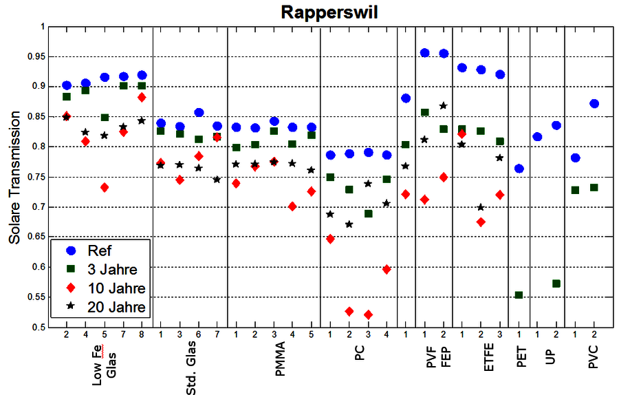 Solaranlagen sind naturgemäss extremen Belastungen ausgesetzt. Das SPF hat darum in verschiedenen Bereichen Anlagen und die Expertise um die Beständigkeit und Lebensdauer von Materialien unter unterschiedlichen Umweltbedingungen zu prüfen.