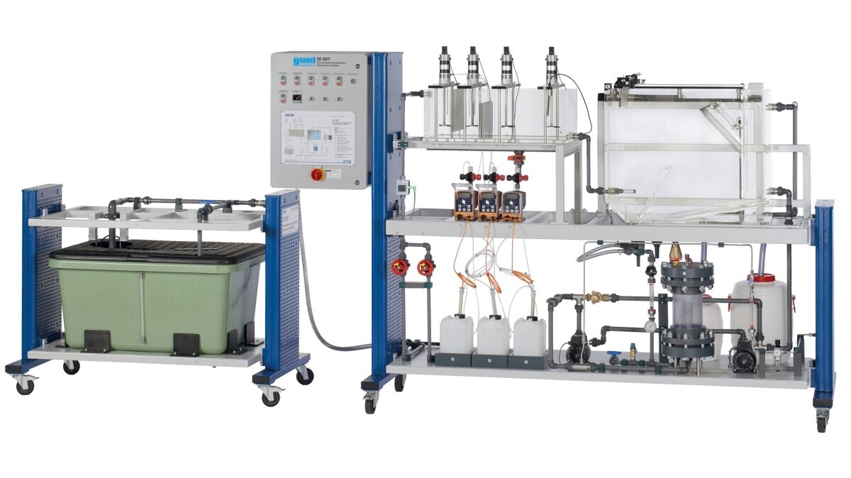 Eine verfahrenstechnische Kombinationsanlage zur Fällung und Druckentspannungsflotation von Abwasser wird zur Demonstration und für Entwicklungsprojekte eingesetzt. Zahlreiche Parameter, wie pH-Wert, Konzentration des Flockungsmittels und Flockungshilfsmittel, können verändert werden.