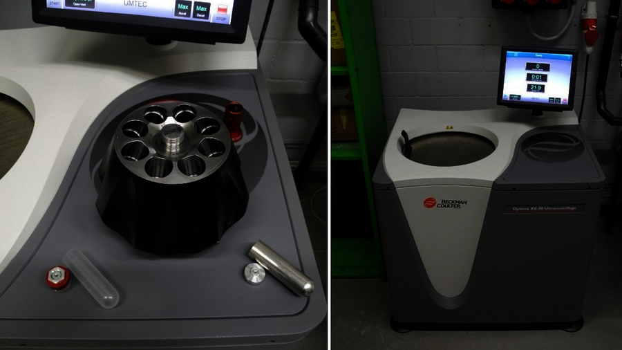 Zur Vorbereitung von Proben für die chemische Analyse stehen zwei Planetenkugelmühlen zur Verfügung. Mit Hilfe von Edelstahl- respektive Zirkonoxidmahlbechern und den entsprechenden Mahlkugeln werden je nach Mahlgut Korngrössen von zum Teil deutlich unter < 0.1 mm erreicht. Je Mahlgang können 125 ml Probe verarbeitet werden.