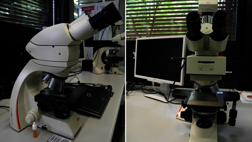 Zur qualitativen Beurteilung von flüssigen oder festen Proben stehen ein Durchlichtmikroskop und ein Auflichtmikroskop mit digitalen Kameras und Software für die Bildanalyse zur Verfügung.