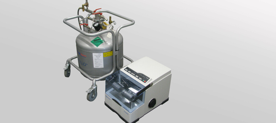 Diese, für die Kryogenvermahlung entwickelte Schwingmühle eignet sich für die Zerkleinerung von Probenmengen bis 20 ml. Durch die integrierte Kühlung des Mahlbechers mit flüssigem Stickstoff wird die Probe bei -196°C versprödet. Dadurch lassen sich Materialien wie weiche Kunststoffe zerkleinern. Ein weiterer Vorteil der Kühlung ist, dass leichtflüchtige Stoffe in der Probe erhalten bleiben.