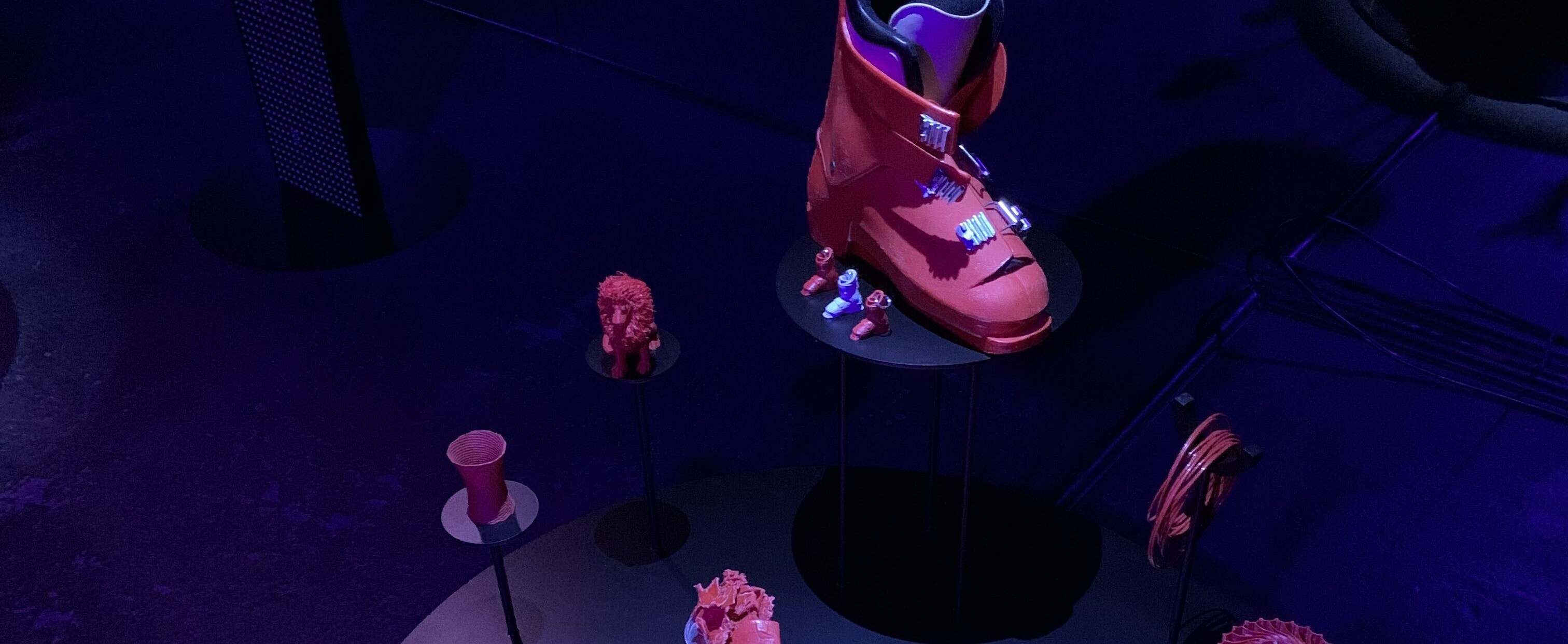 Ein besonderer Blickfang ist die Produktion von Filamenten für 3D Drucker aus 100 % recycelten Skischuhen. Dieses Verfahren wurde von Studierenden aus dem Studiengang Maschinentechnik | Innovation und dem IWK entwickelt. Es wird eng mit der ARGO Werkstätte Davos zusammengearbeitet, wo Menschen mit Behinderung alte Skischuhe recyceln, um das gummielastische Material für neue 3D-Druckanwendungen wieder zu verwenden.