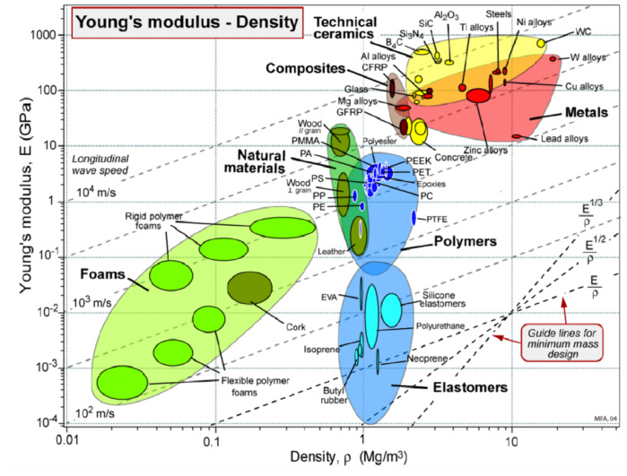 Werkstoffklassen übergreifend verwenden wir den Cambridge Engineering Selector zur Eingrenzung geeigneter Werkstoffe entsprechend dem Anforderungsprofil.